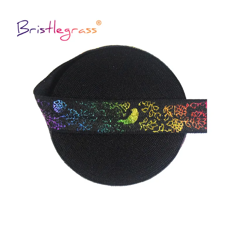 BRISTLEGRASS 2 5 10 ярдов 58 "15 мм цвета радуги с цветочным рисунком птица Фольга печати отложной резинки враг ленты из спандекса накладные волосы блондики, галстуком-бабочкой швейная отделка