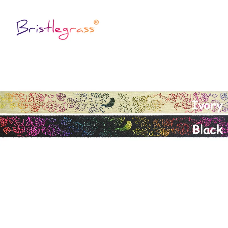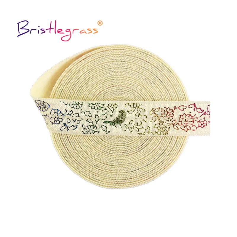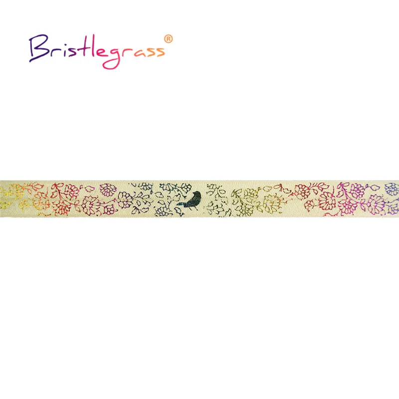 BRISTLEGRASS 2 5 10 ярдов 5/8 "15 мм Радуга Цветок Птица фольга печать Сложите на резинки FOE ленты из спандекса лента для волос швейная отделка