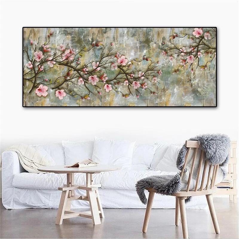Скандинавская Картина на холсте с цветами вишни, картина маслом на холсте, Настенная картина, украшение для гостиной, домашний декор