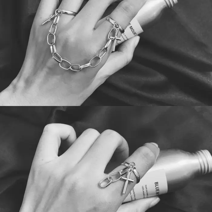 Модное геометрическое регулируемое кольцо в стиле панк, хип-хоп, простое многослойное кольцо с черным крестом, мужские и женские ювелирные изделия для свиданий и вечеринок, подарки
