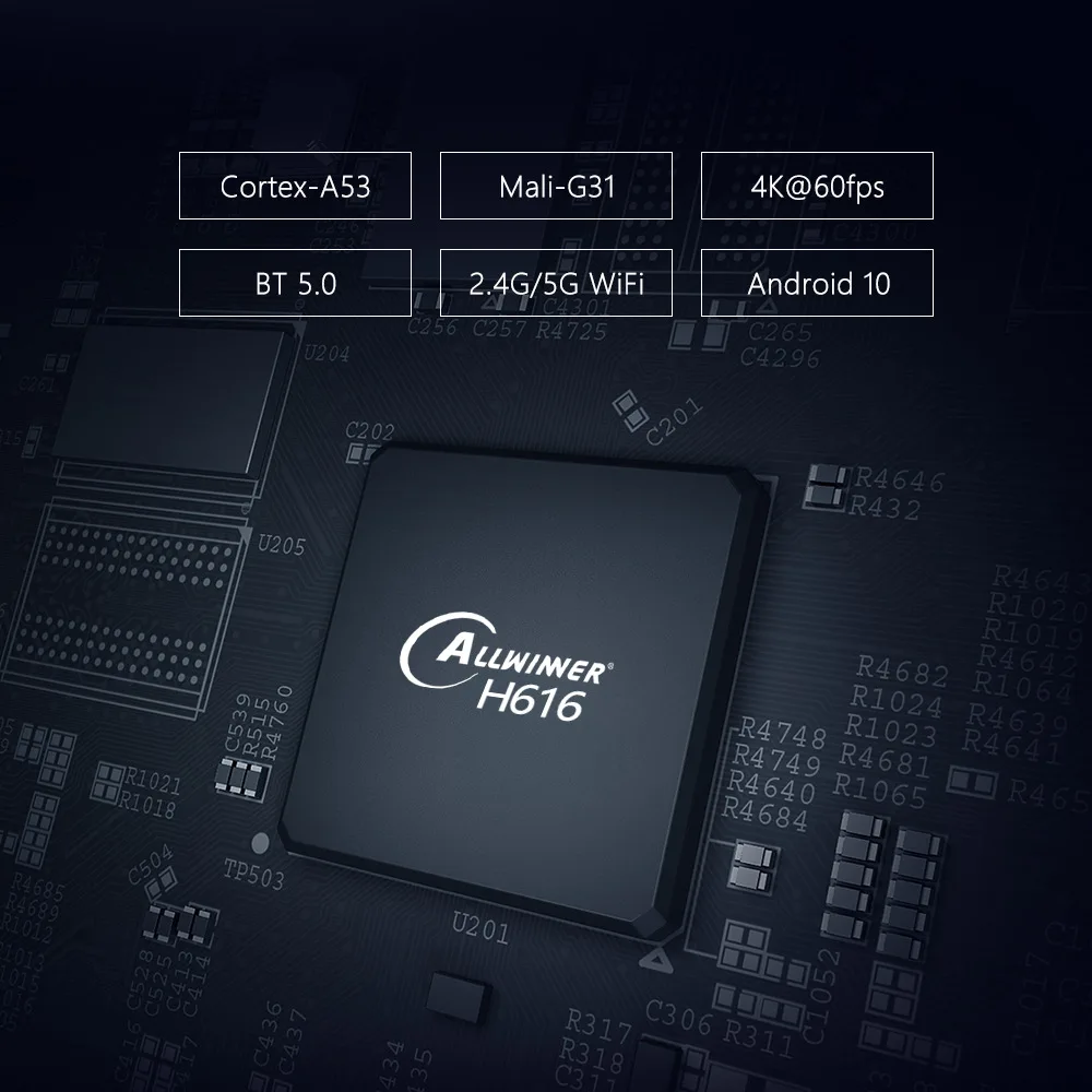 Allwinner H616 64-разрядный четырехъядерный процессор ARM®Кортекс™A55