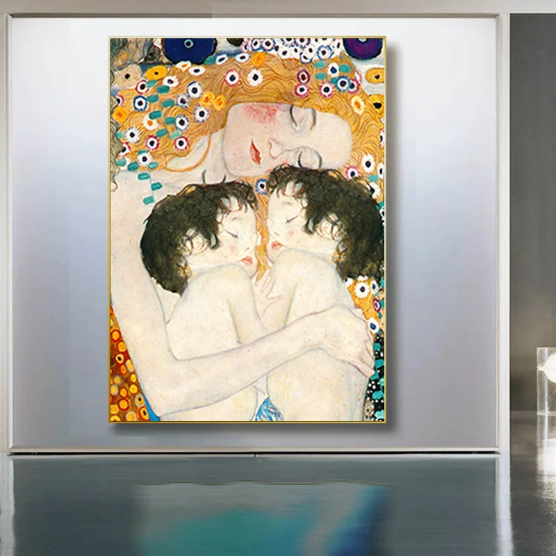 Знаменитая картина Мама Любовь Близнецы ребенок Густав Климт Картина на холсте художественные плакаты и печать Настенная картина для декора гостиной