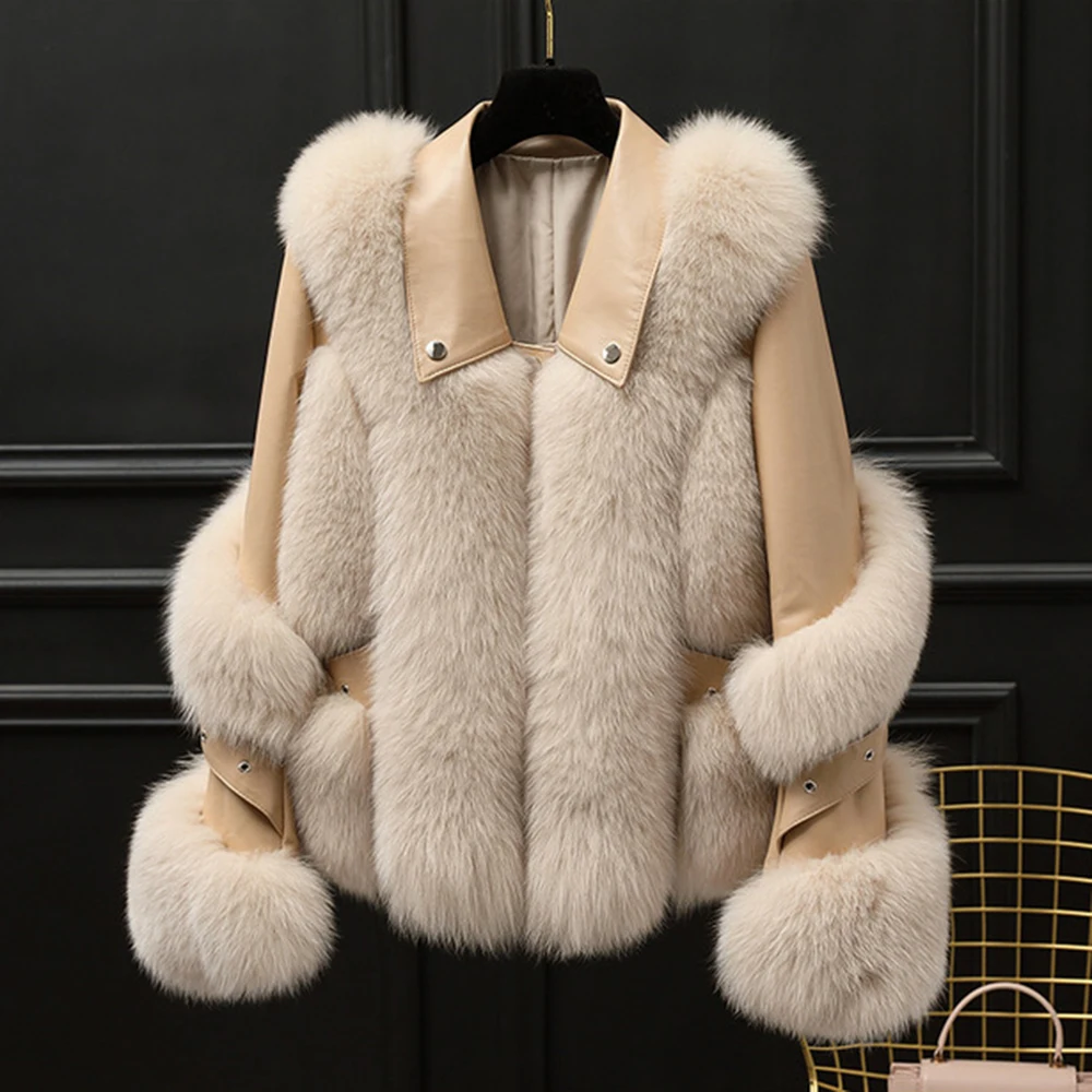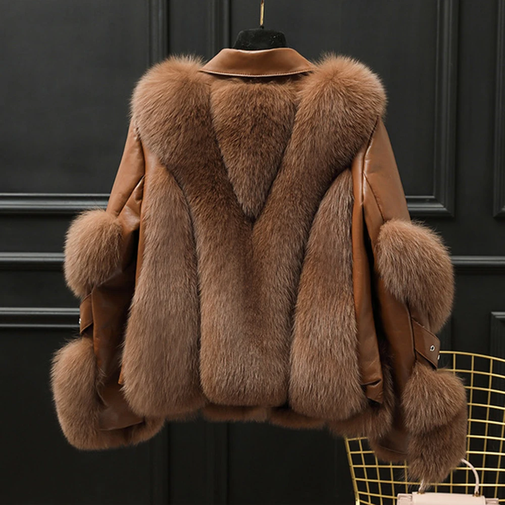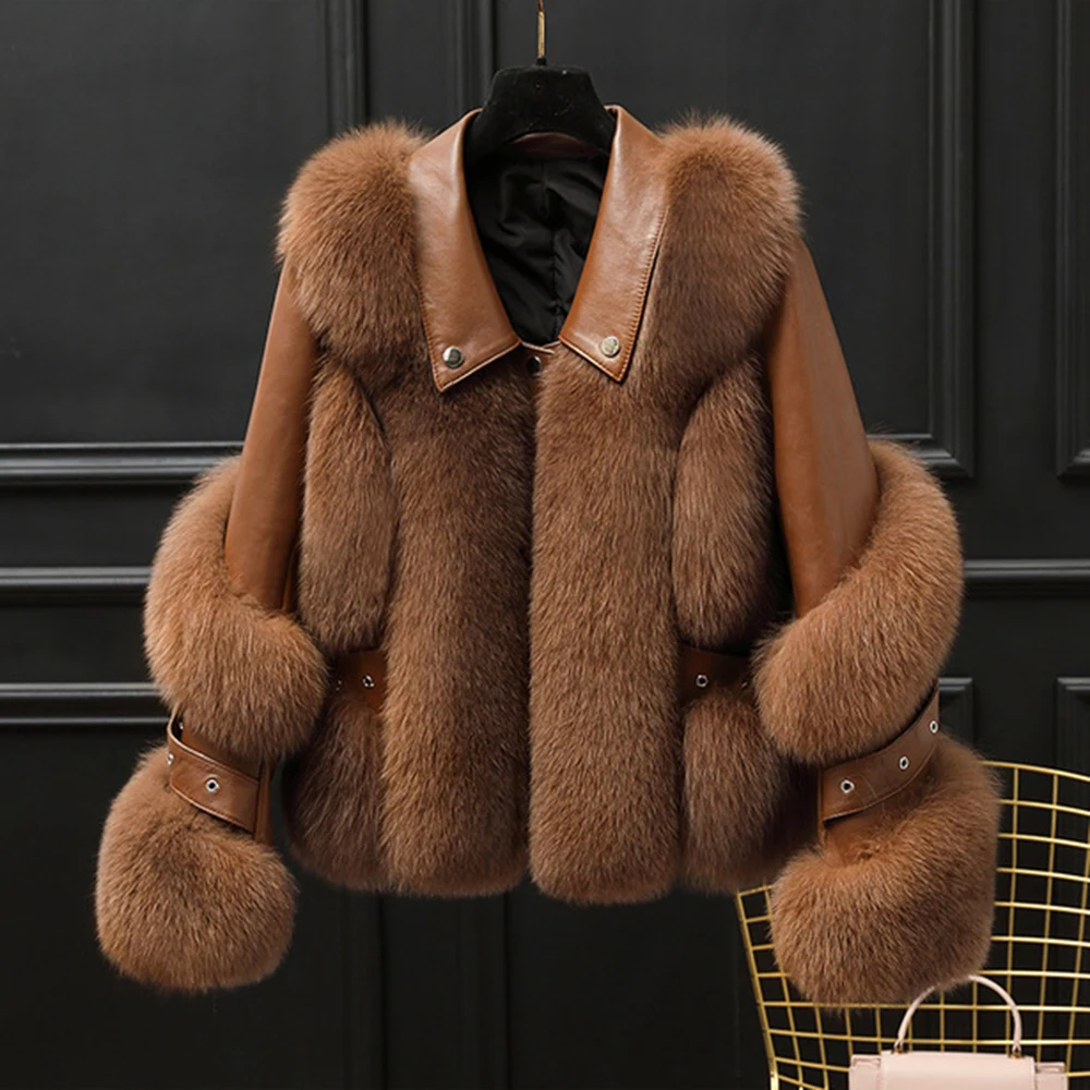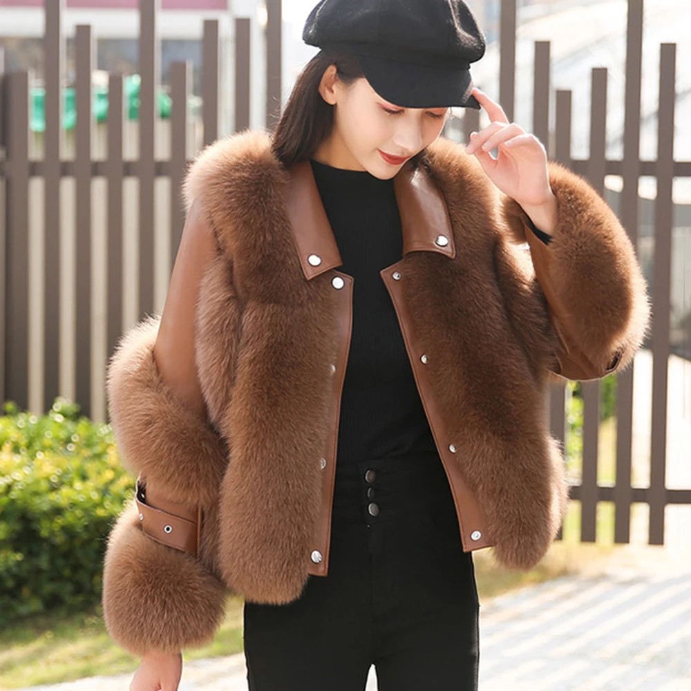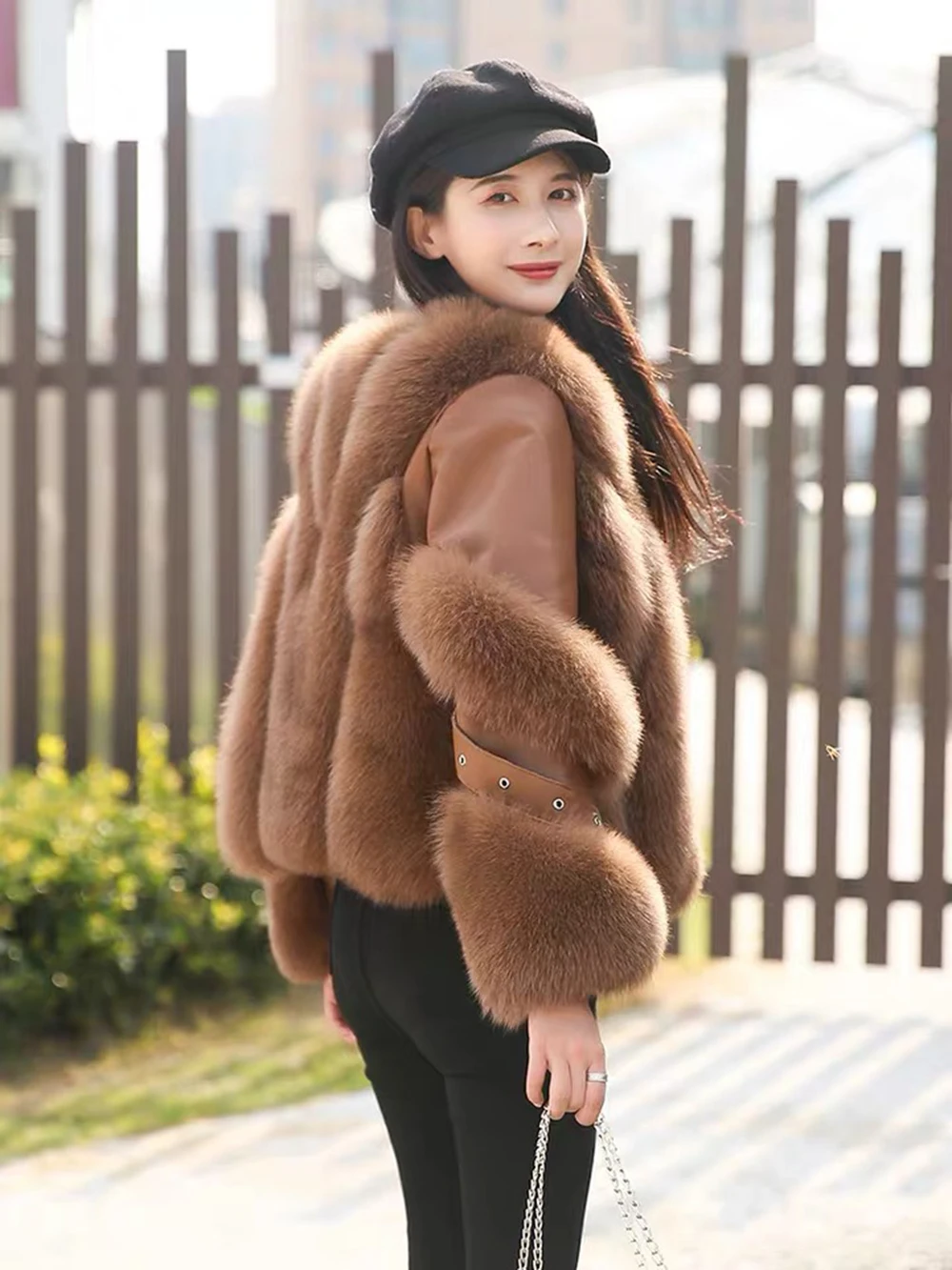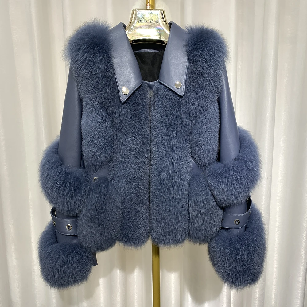 Женская куртка из натуральной кожи, пальто из лисьего меха, новая зимняя модная верхняя одежда, плотная теплая Женская куртка S7932