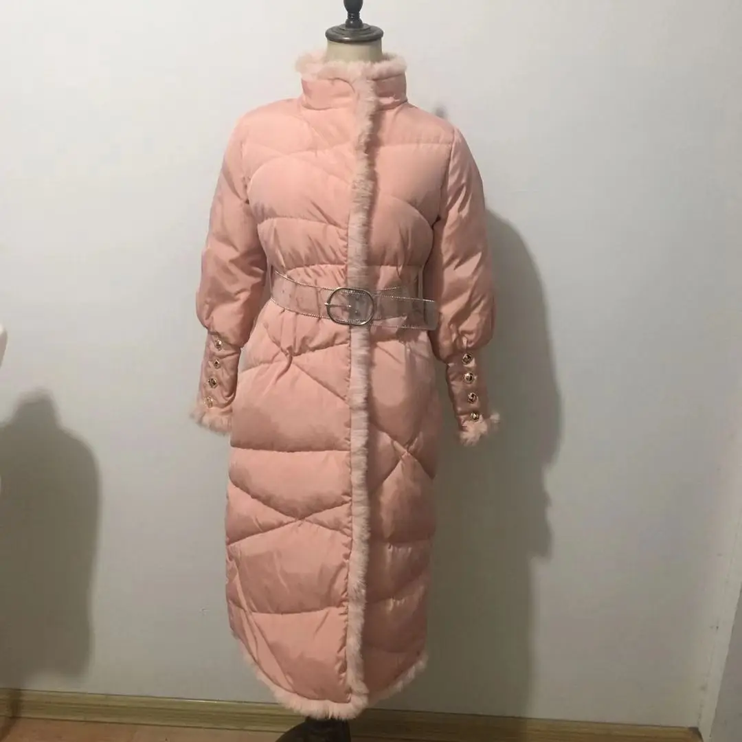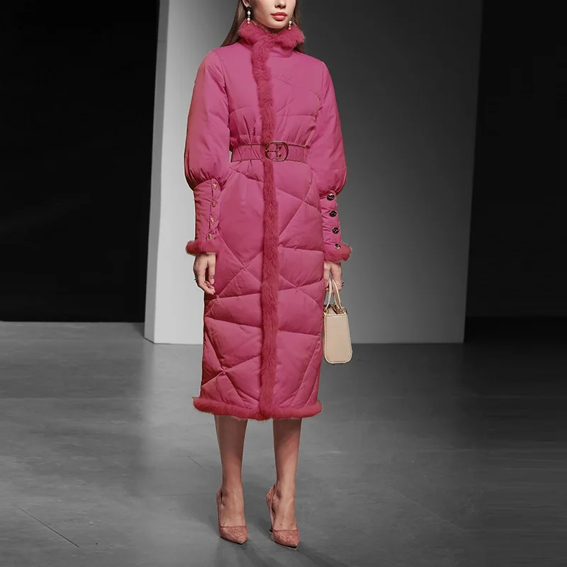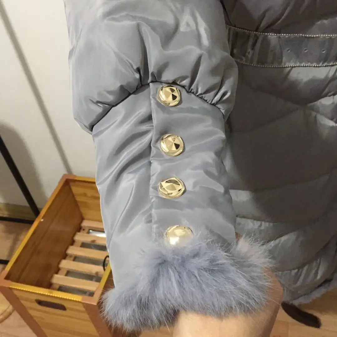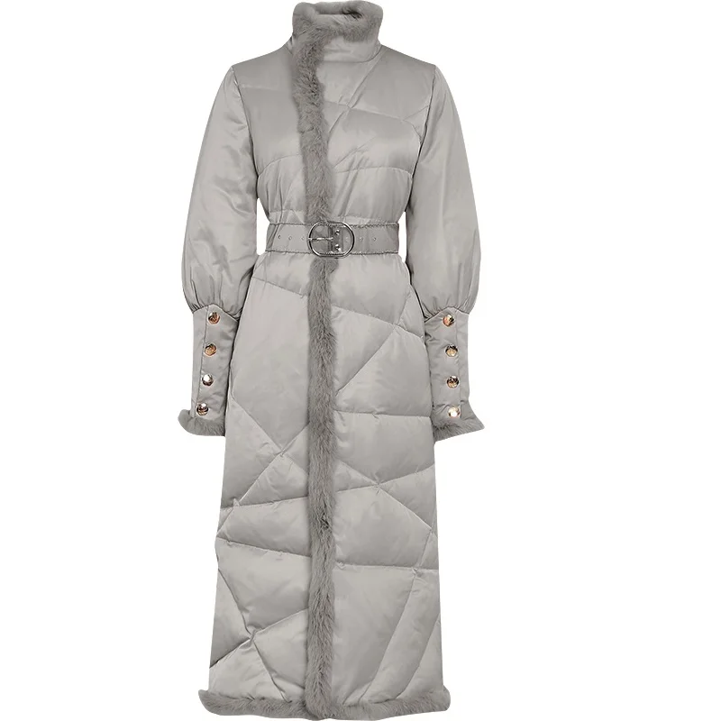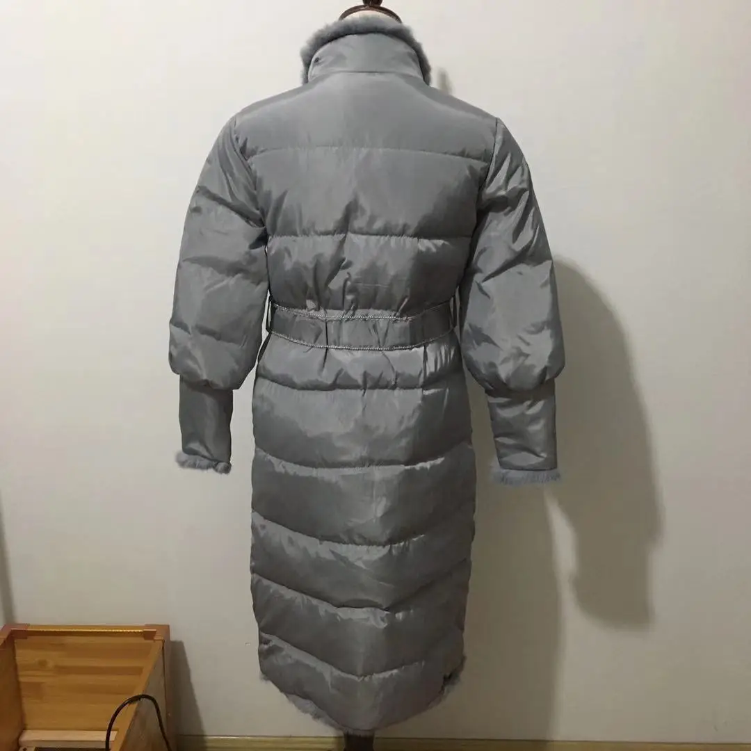 Пуховик женский зимний из натурального кроличьего меха, с поясом, F2509