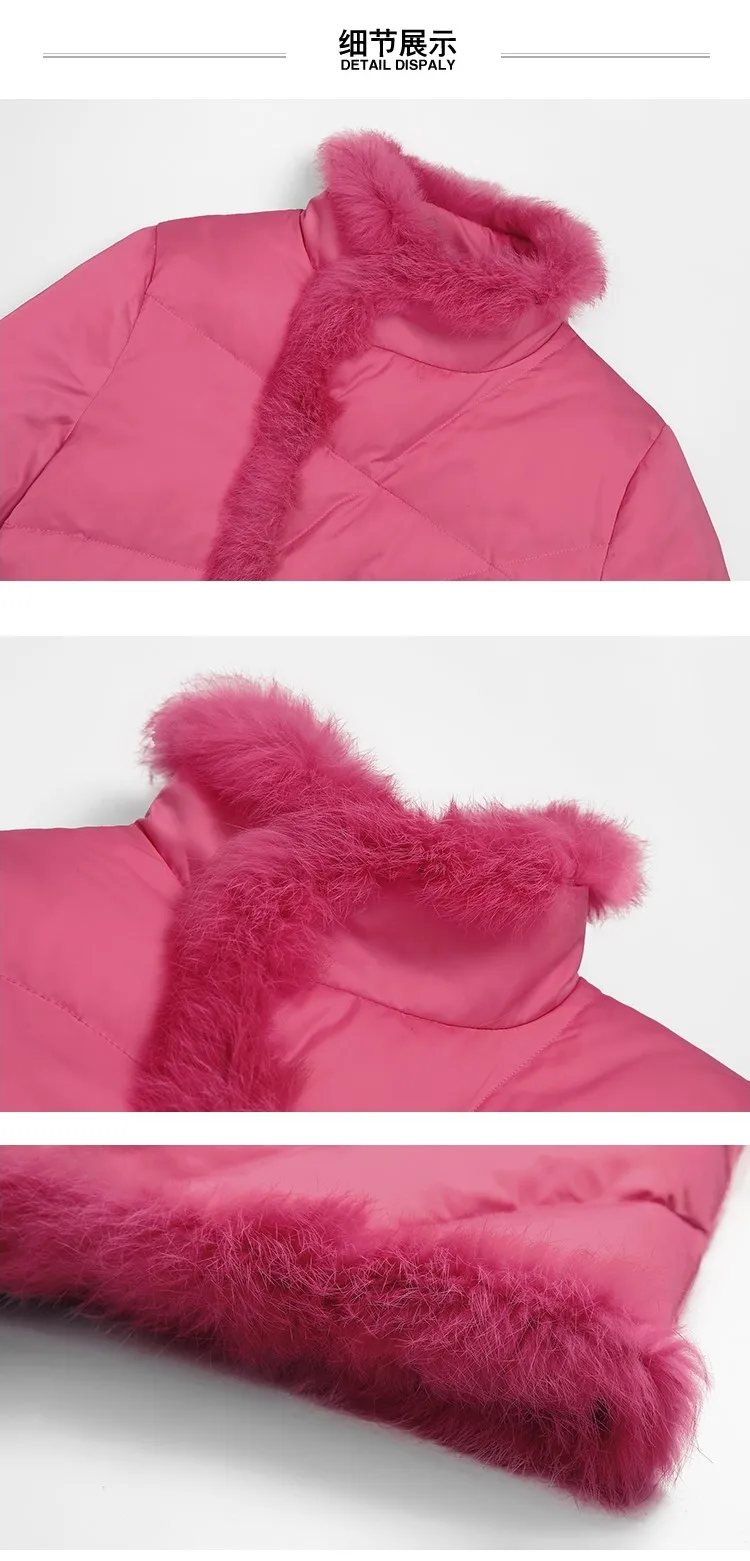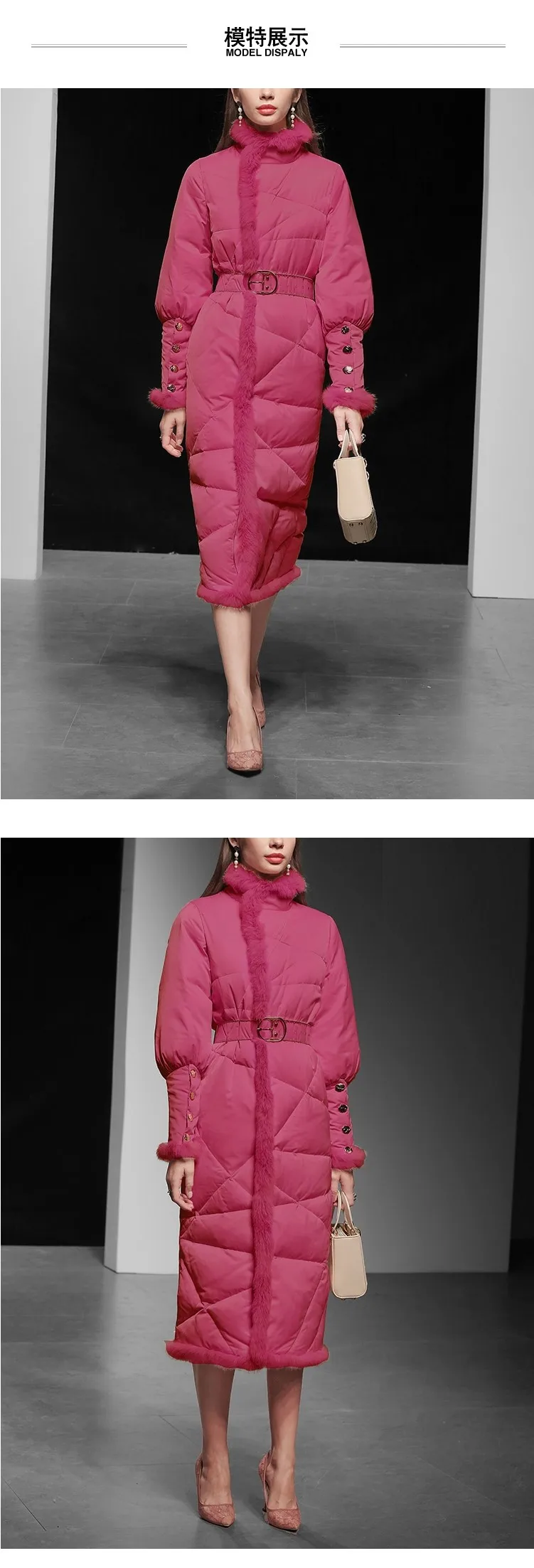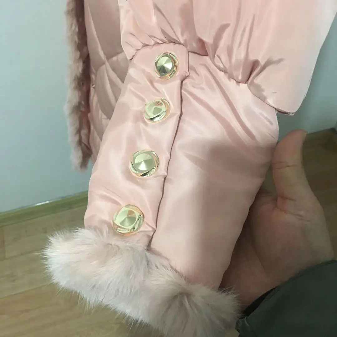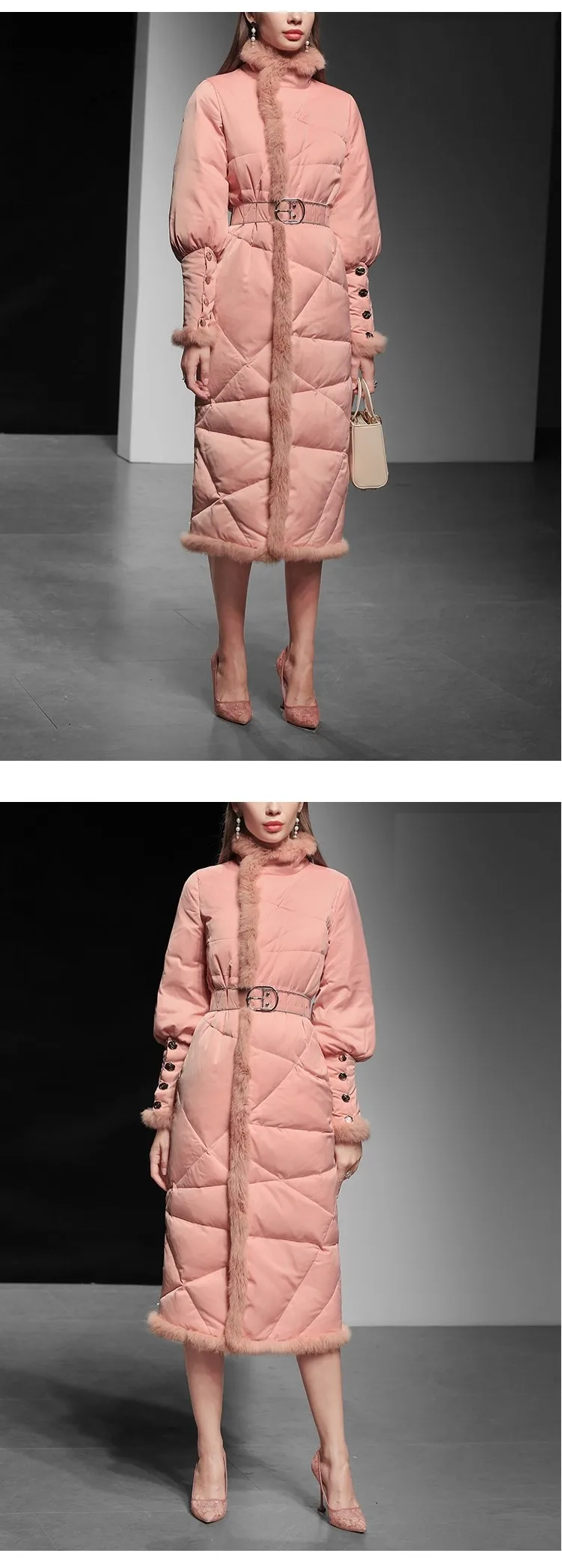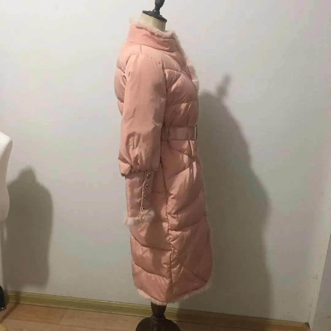 Пуховик женский зимний из натурального кроличьего меха, с поясом, F2509