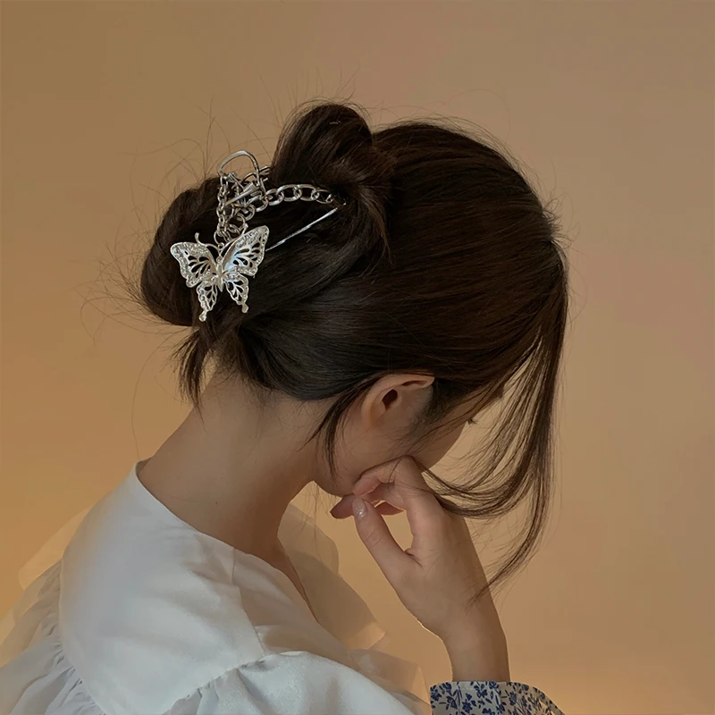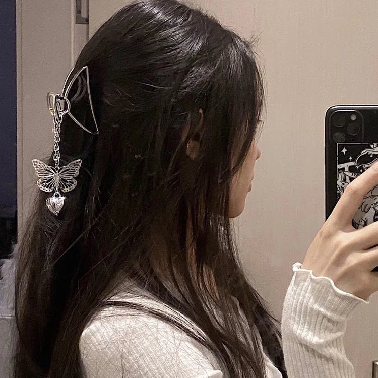 Заколка для волос в готическом стиле с подвеской-бабочкой, металлич...