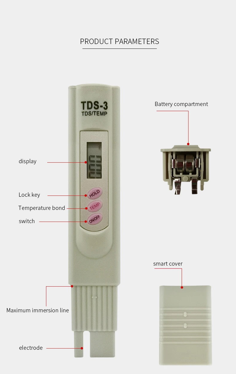 Портативный Цифровой TDS-счетчик воды, измеритель качества воды с фильтром, прибор для проверки чистоты воды, TDS-метр, термометр для аквариума, бассейна