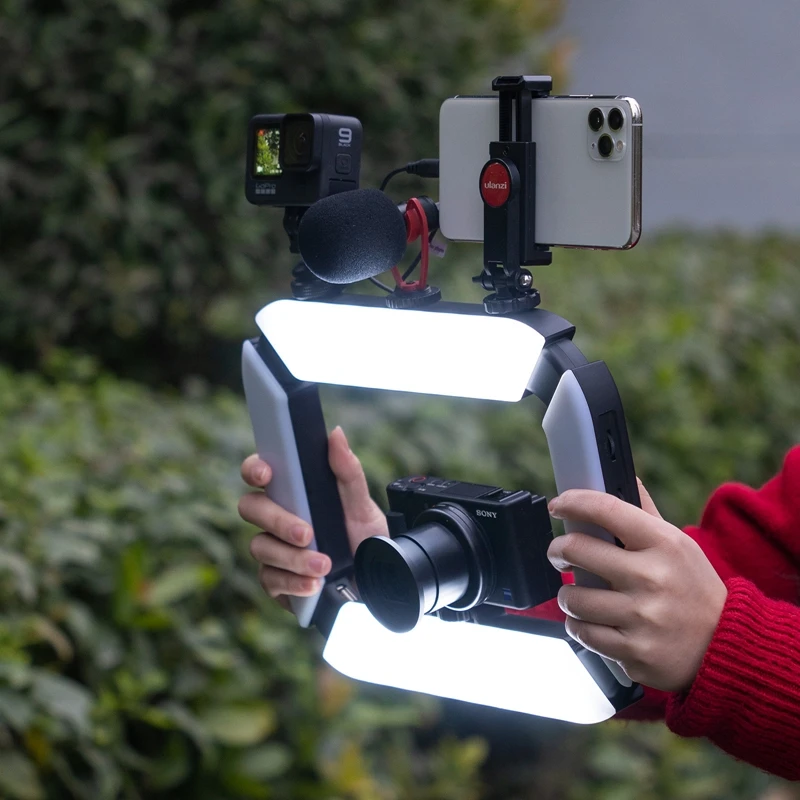 Ulanzi U200 аккумуляторная смартфон киносъемок с функцией непрерывного изменения вертикальную съемку светодиодный кольцевой светильник светодиодный видео светильник DSLR смартфона ручка Vlog сцепление
