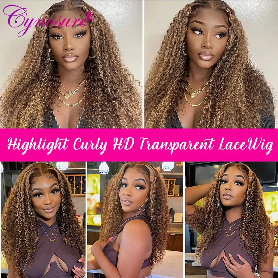 Парики из натуральных волос Cynosure HD, прозрачные, с эффектом деграде, бразильские, курчавые, вьющиеся