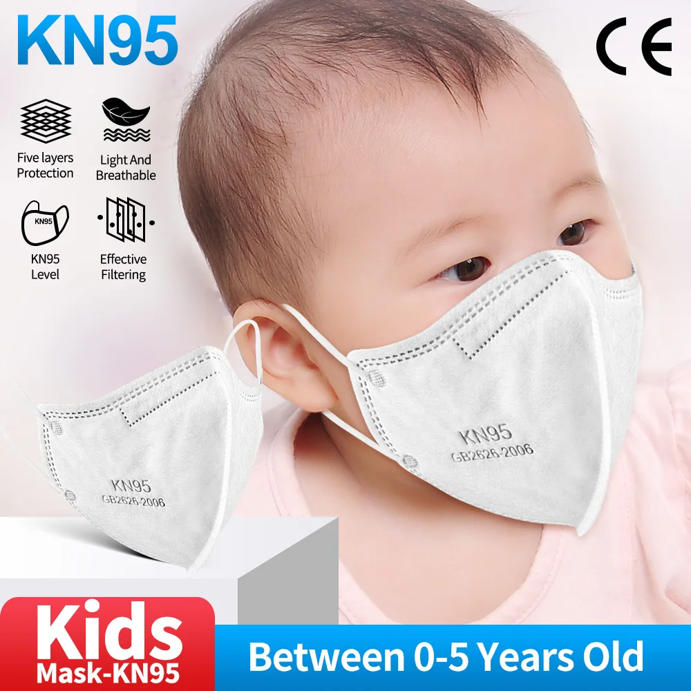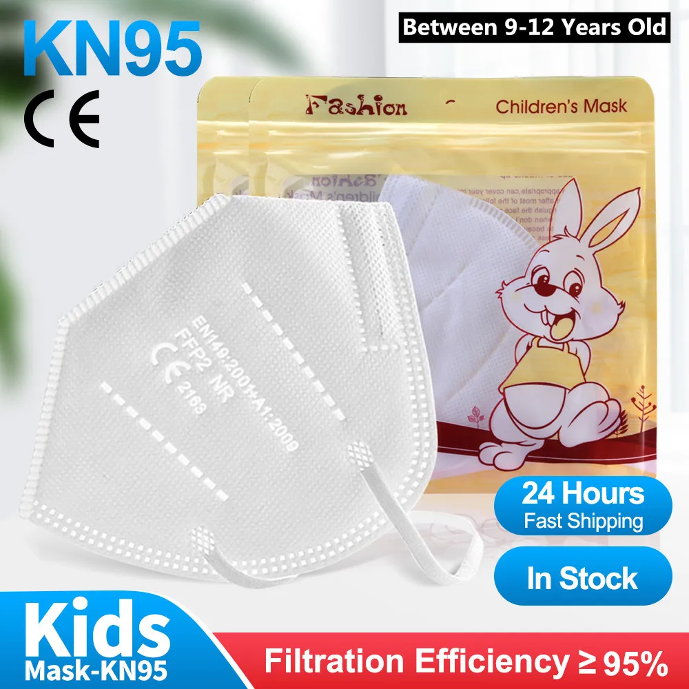 10-100 шт. KN95 маски для 0-12 лет, ffp2mask детей kn95mask дети 5 слоев дети ребенок пыли FPP2 маска многоразовые Респиратор маска CE респиратор