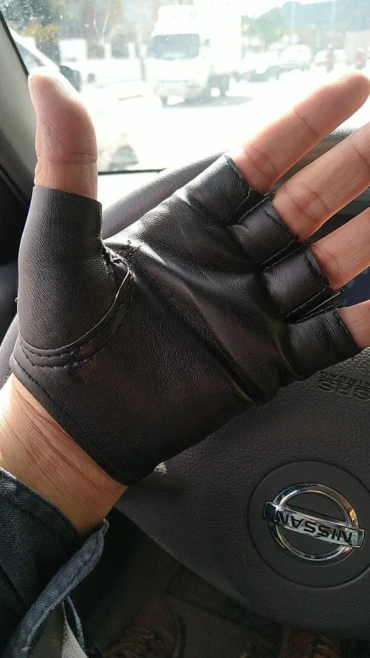Перчатки мужские из искусственной кожи, Нескользящие митенки с откр...