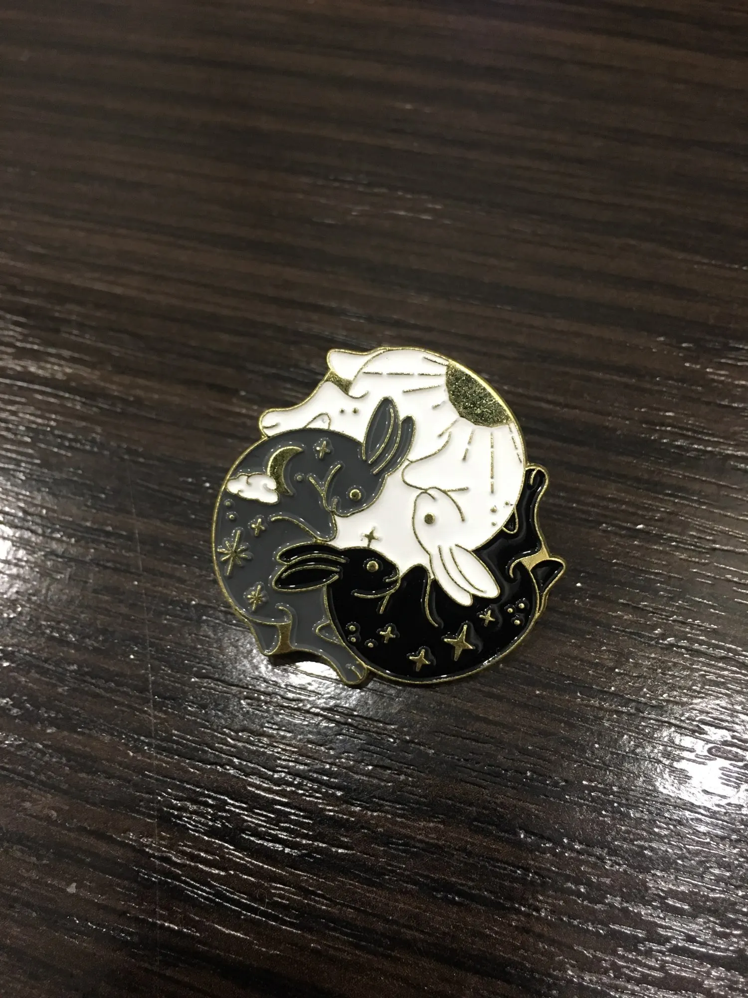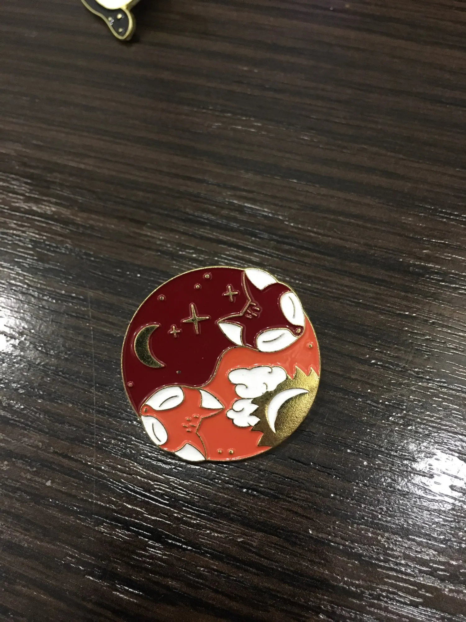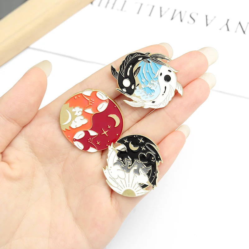 Значки на лацкан с изображением солнца, луны, лисы, кролика кои, летучей мыши, брошь в виде волка, для сумок, одежды