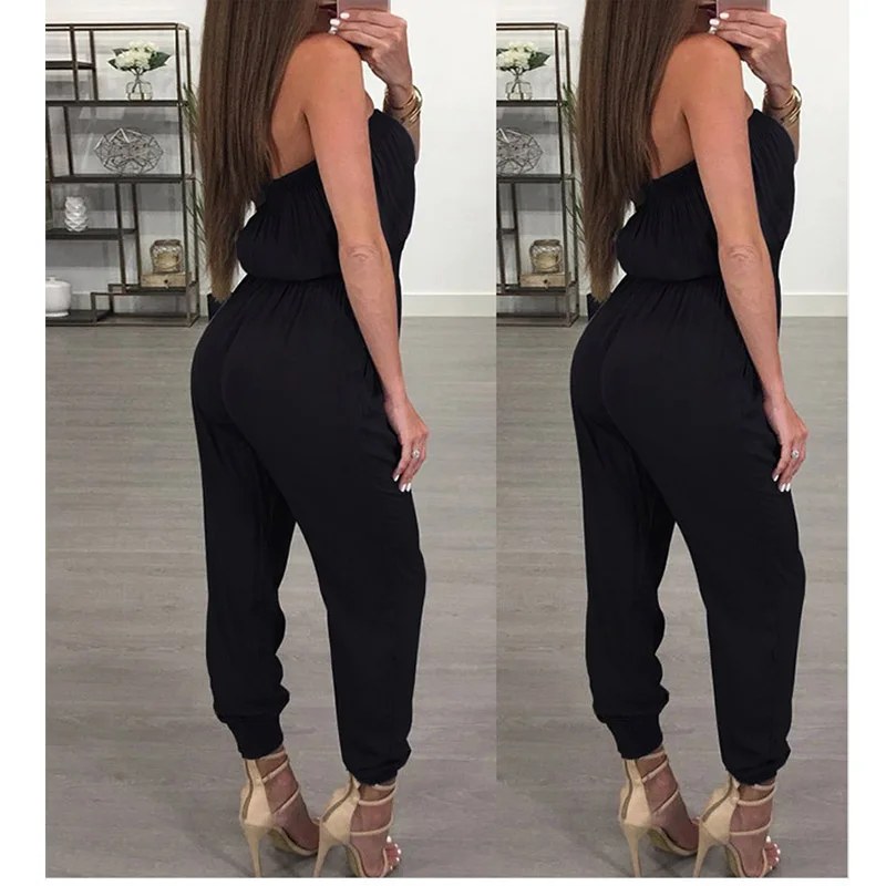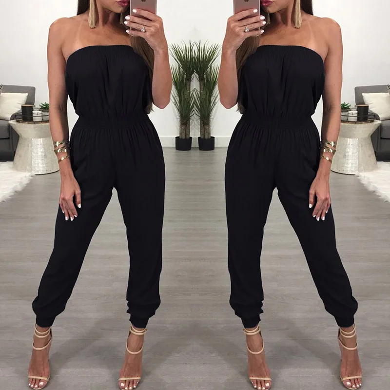 Женский комбинезон без бретелек, черный повседневный комбинезон без...