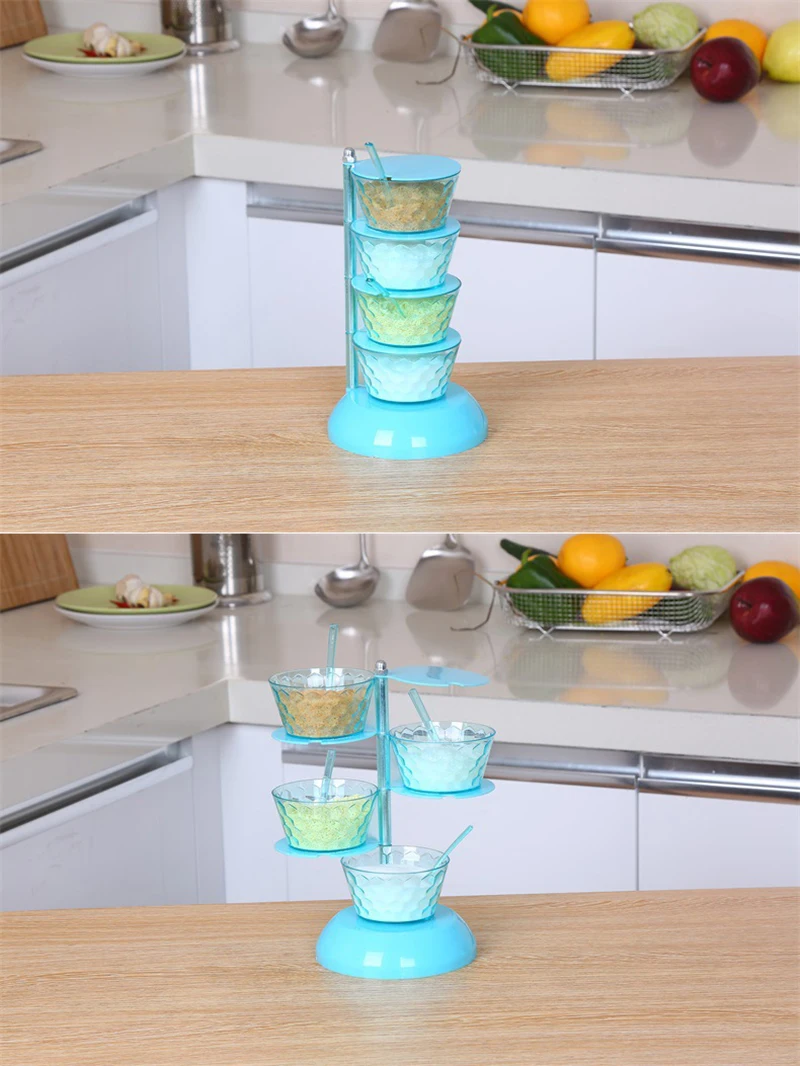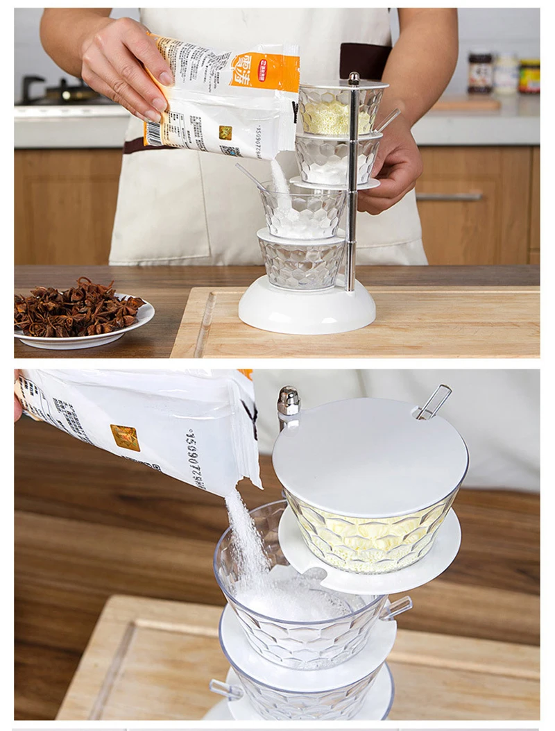 Банка для специй + ложка для хранения приправ, вертикальная вращающаяся компактная коробка для специй, кухонная полка, многофункциональная коробка для хранения