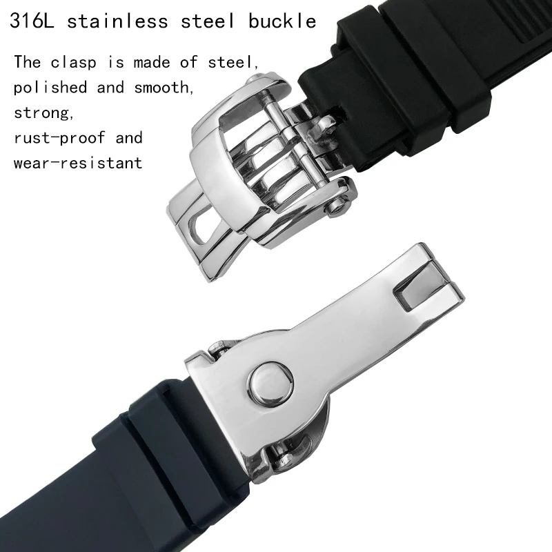 Ремешок для часов из фторрезинового каучука, 28 мм, 30 мм