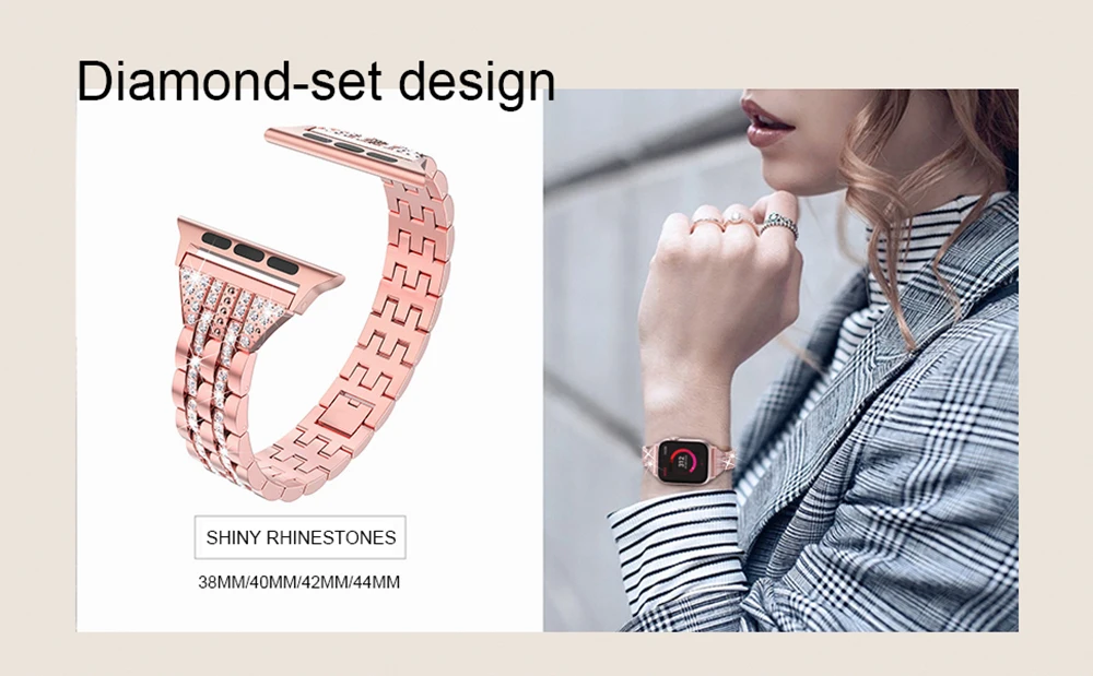 Браслет для наручных часов iWatch, браслет серии SE 6/5/4/3 наручных часов Apple Watch 38 мм 40 мм 42 мм 44 женская обувь; Со стразами; С металлическим ювелирный Ремень Замена