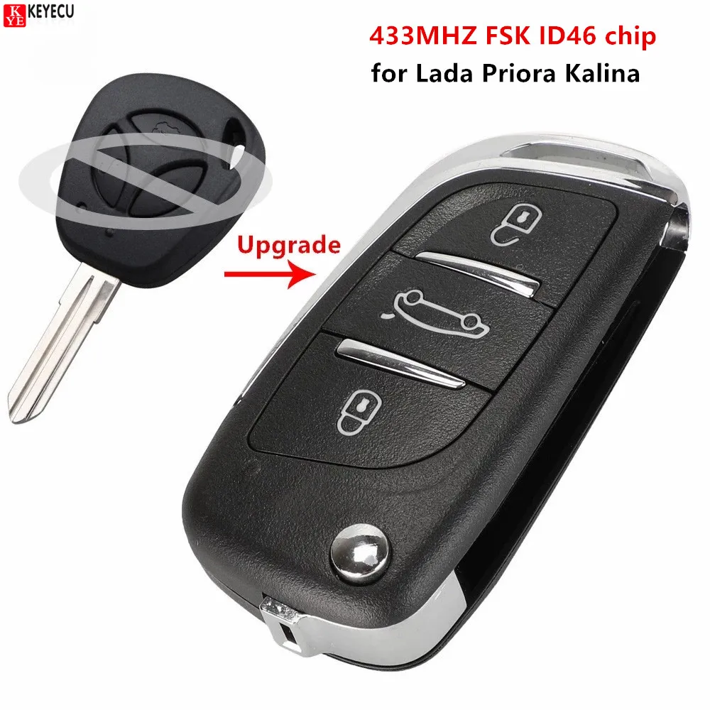 Обновленный пульт дистанционного управления KEYECU, 433 МГц, чип FSK ID46 для Лада, Приора, калина, 3 кнопки