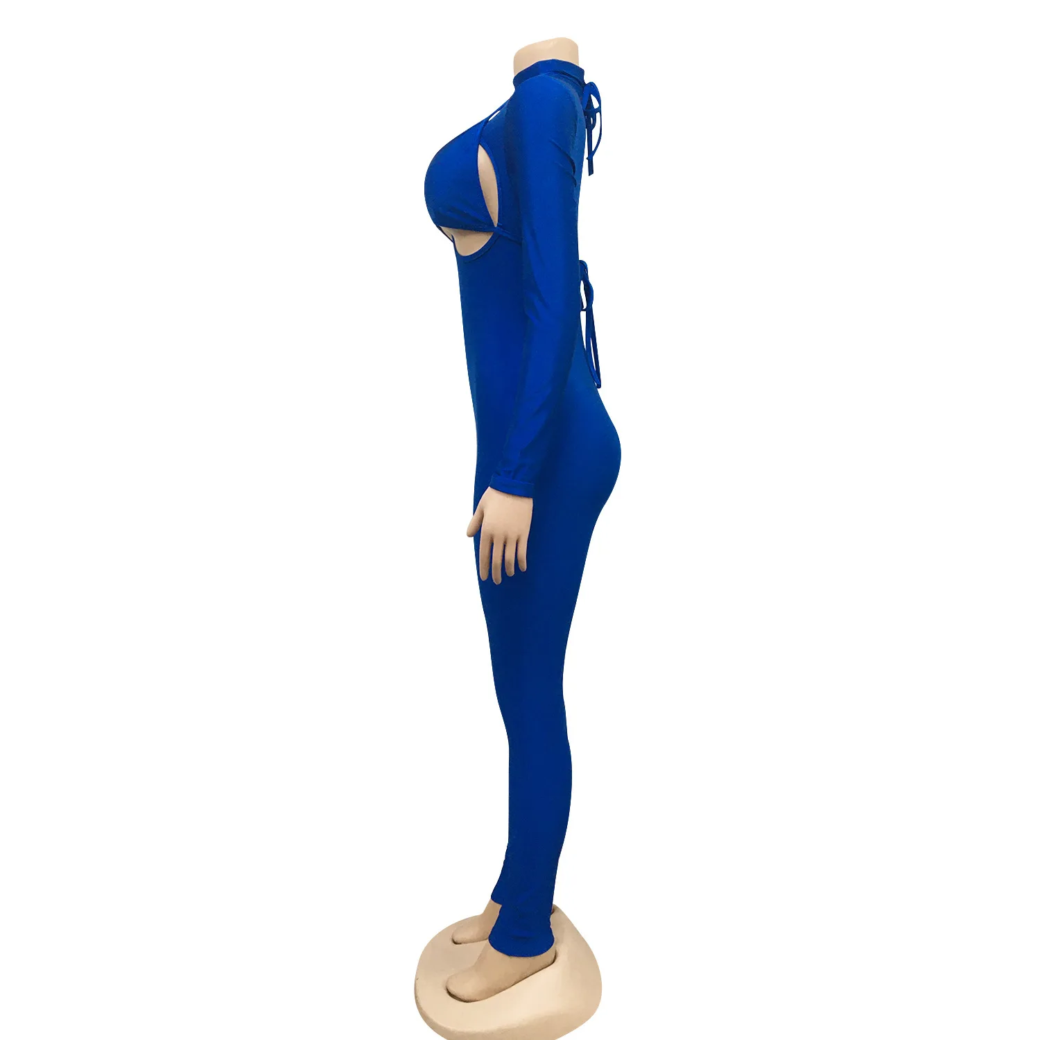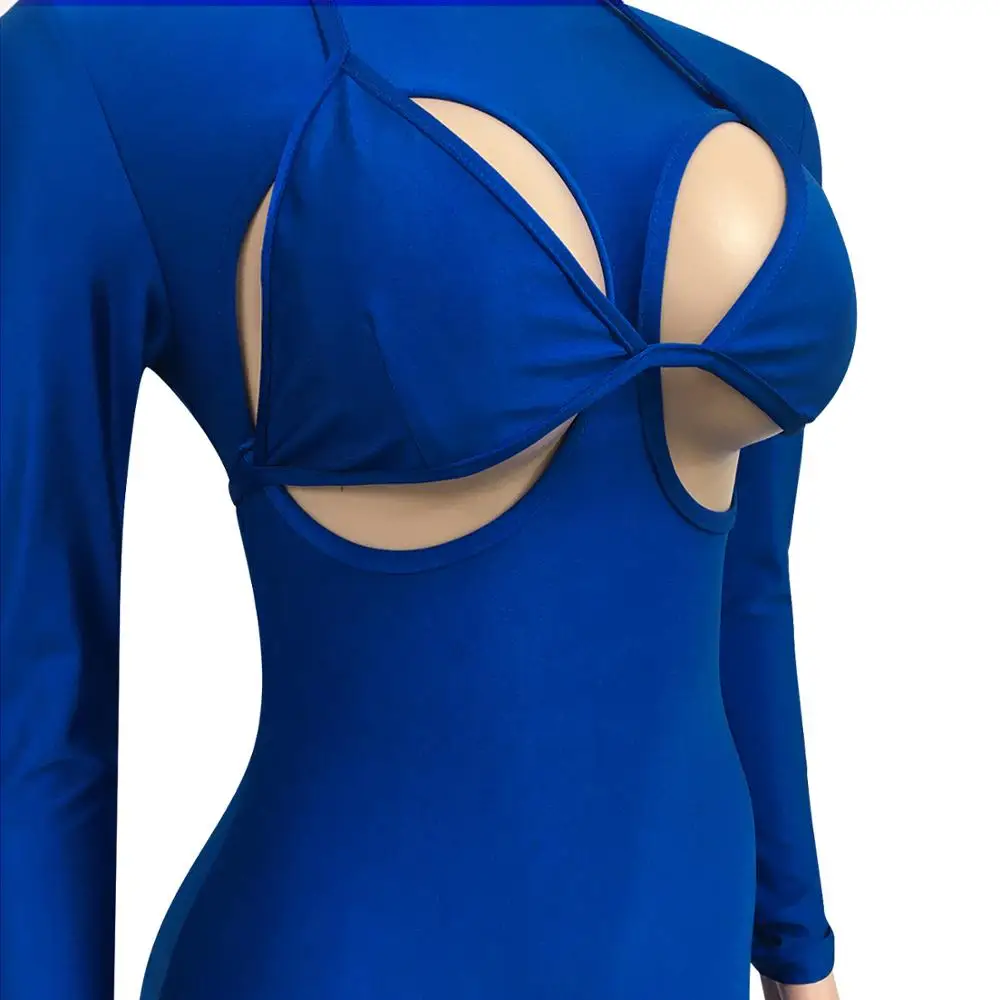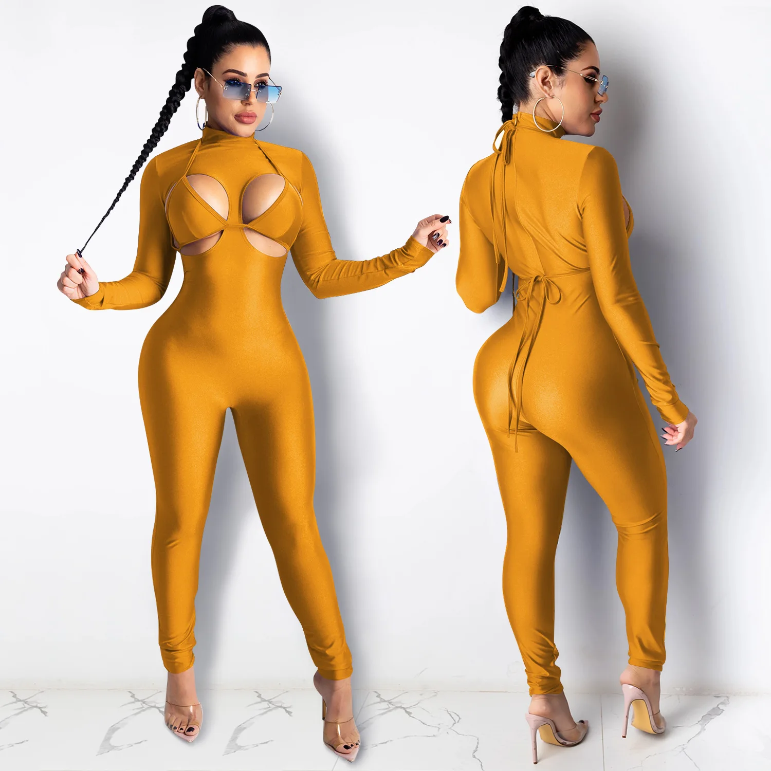 Однотонный комплект из двух предметов Adogirl с вырезами, Облегающий комбинезон с длинным рукавом + бюстгальтер, сексуальный костюм, осенний комплект ночного клуба, комбинезон, одежда