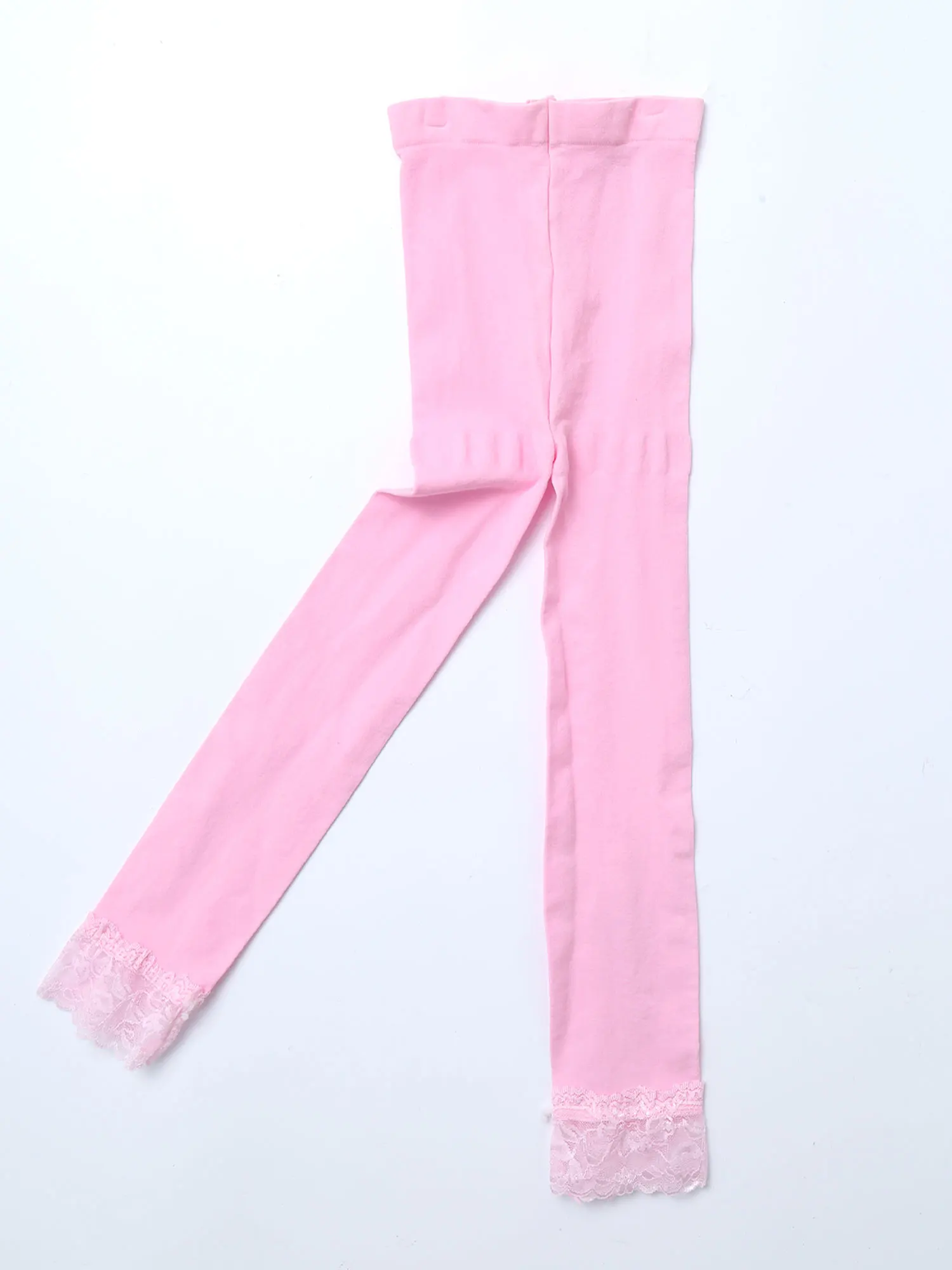 M-L весенне-осенние бархатные эластичные леггинсы с кружевной подошвой для девочек укороченные штаны для гимнастики, балетные леггинсы костюм для танцев лебедя