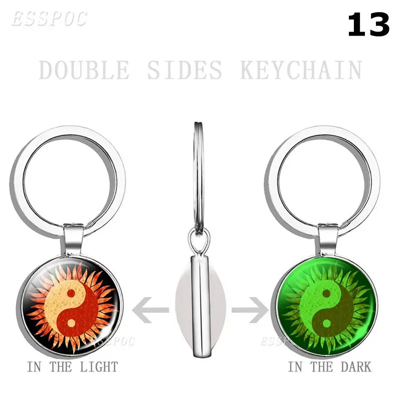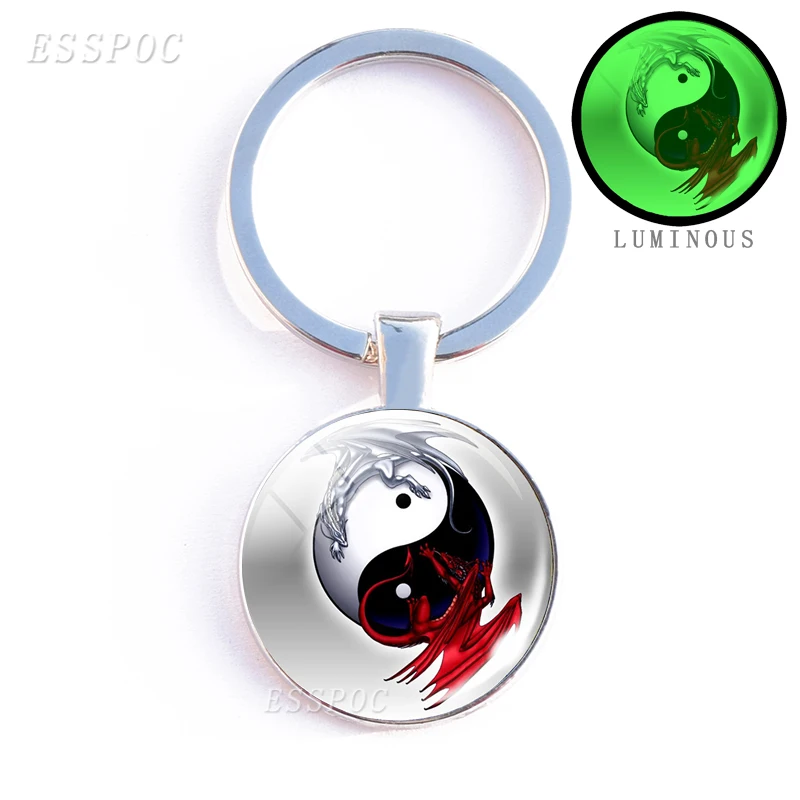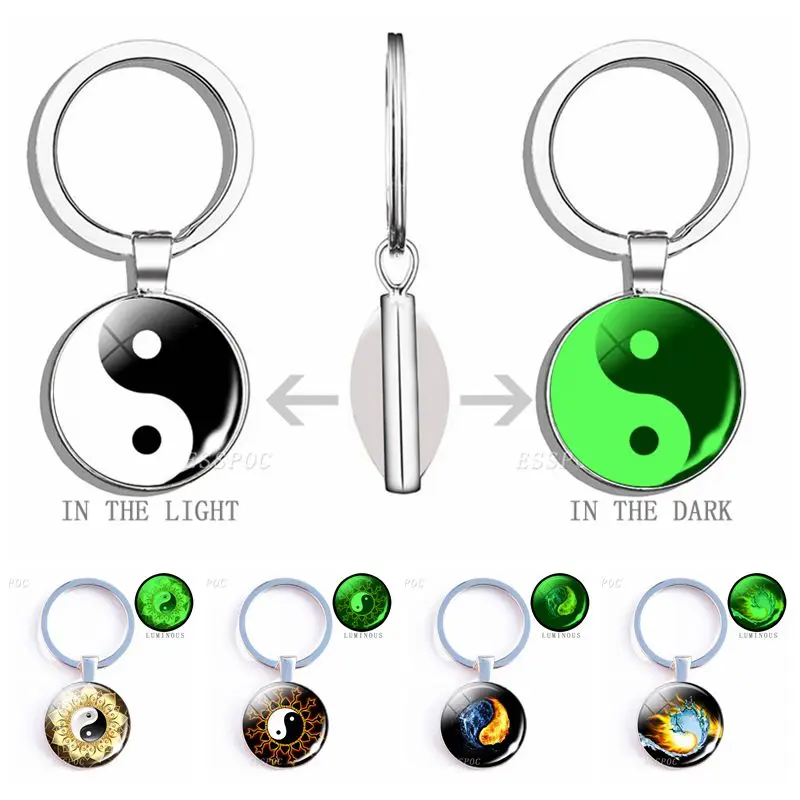 Светящиеся Инь (железная Гуаньинь) Ян сплетен брелок Китайский Тай Чи Двусторонняя кабошон кулон ювелирный брелок для ключей аксессуары светится в темноте