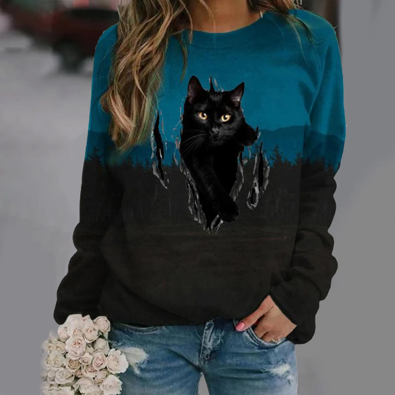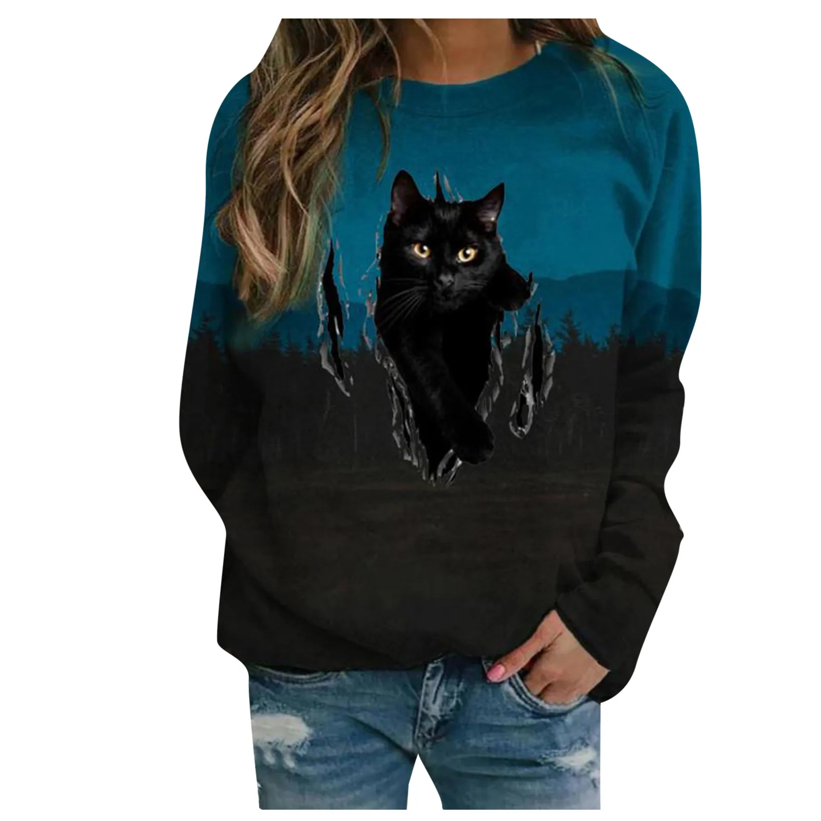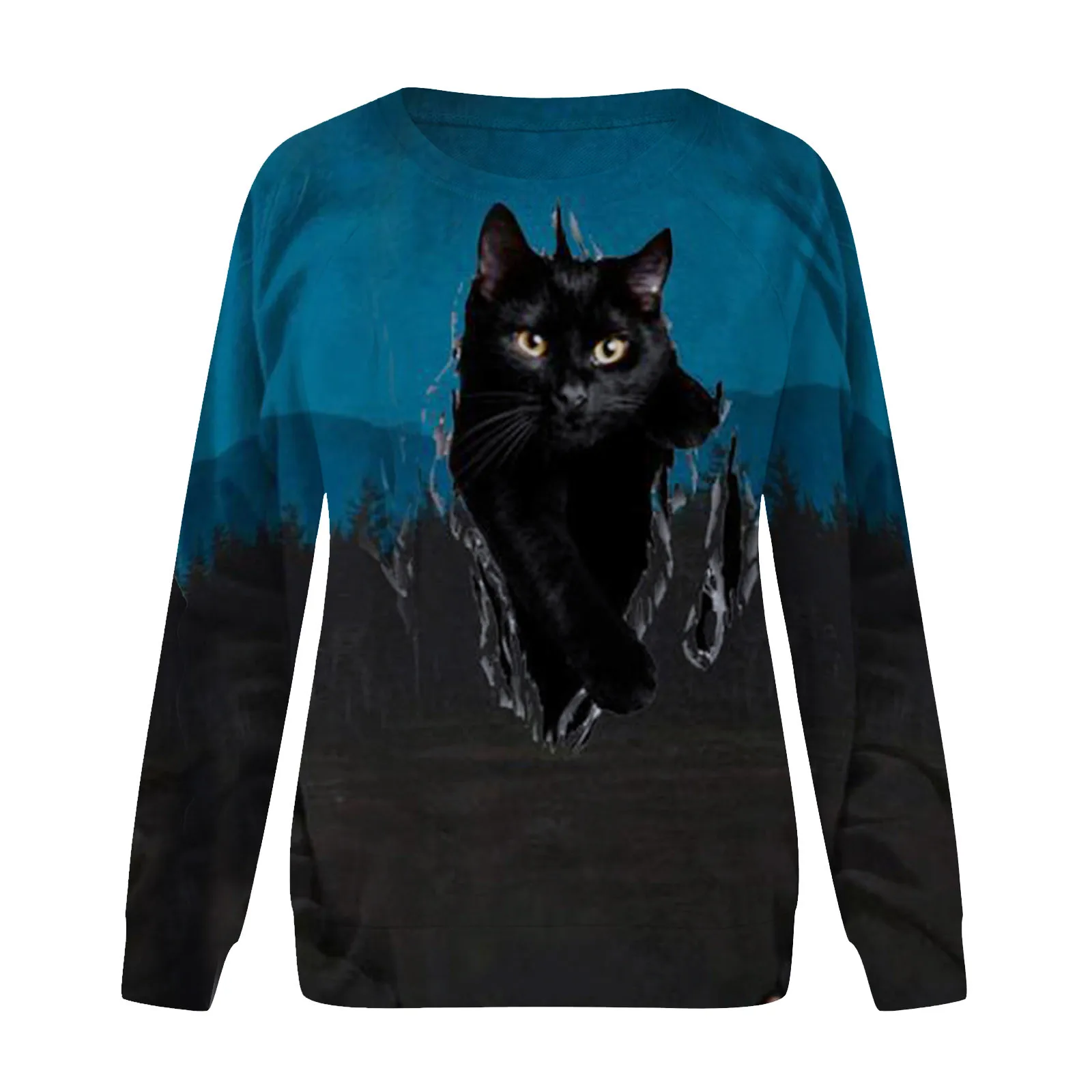 Толстовка Женская зимняя с длинным рукавом, повседневный свитшот в стиле Харадзюку, с 3D рисунком животного, кота, теплый пуловер, одежда, свитшоты