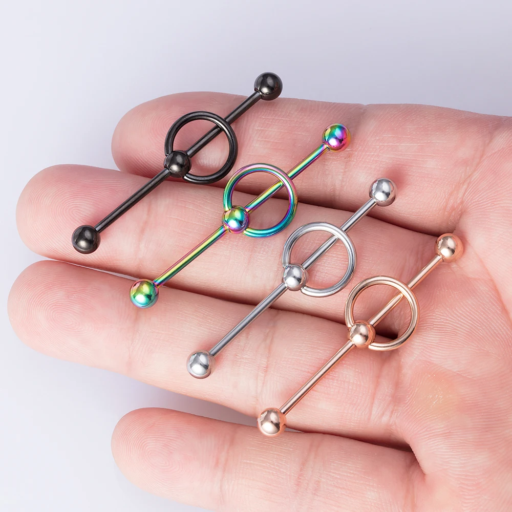 1 шт., 14 г, хирургическая сталь BCR промышленно производимые ювелирные изделия для пирсинга, промышленные длинные серьги-штанги, гвоздики, хрящевой Козелок для женщин и мужчин