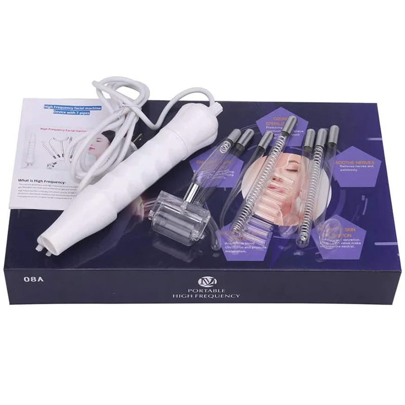Высокочастотный косметический аппарат, портативная высокочастотная палочка для терапии кожи для лечения акне, удаление пятен и морщин для подтяжки кожи с 7 стеклянными трубками