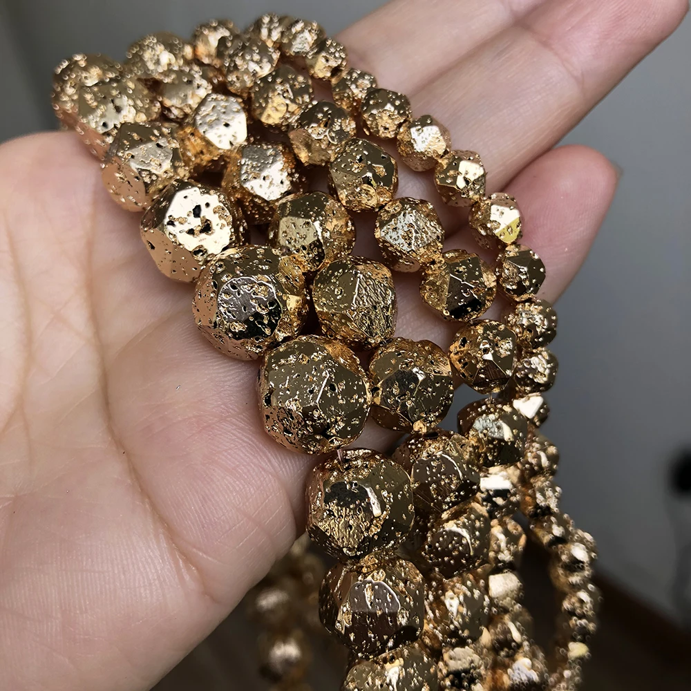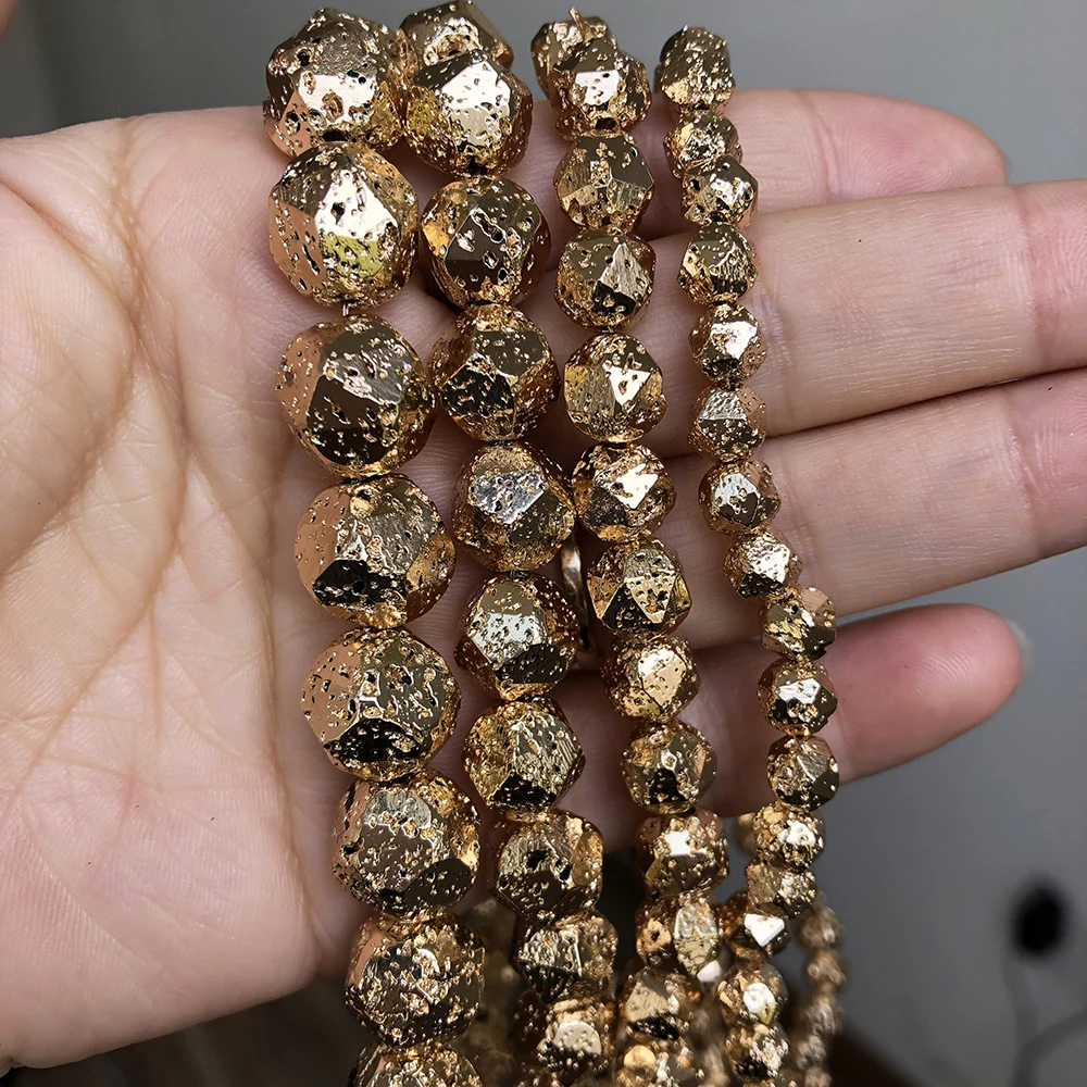 Натуральные вулканические лавовые минеральные бусины светильник лые Позолоченные граненые бусины из камня, для самостоятельного изготовления ювелирных изделий браслет 15 ''6 8 10 12 мм