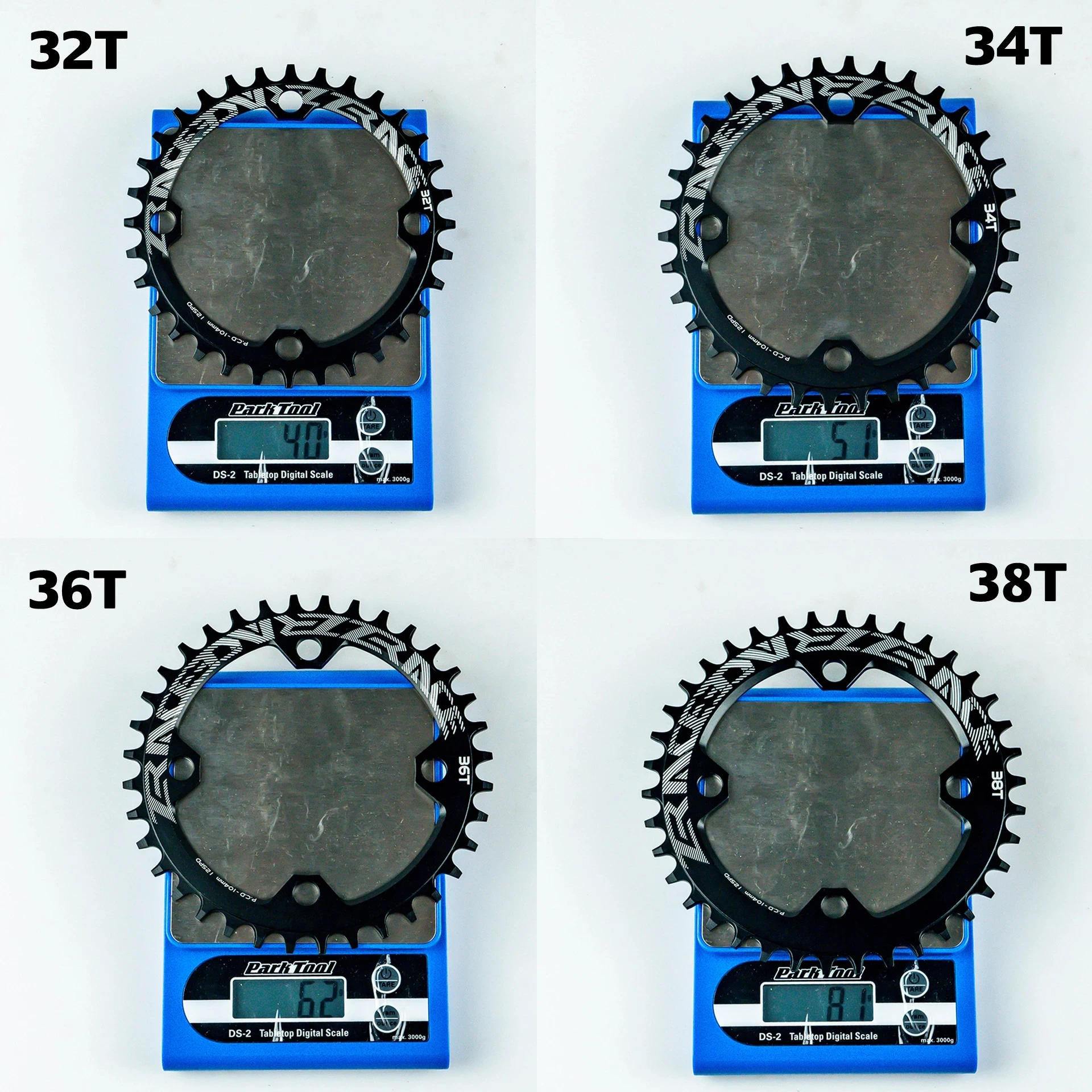 Вес: 32T/40g, 34T/51g, 36T/62g, 38T/81g