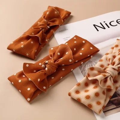 1 шт.; Одежда для маленьких девочек; Широкий нейлоновая повязка на голову в милый горошек дизайн Луки нейлон и повязка на голову, для новорожденных и маленьких детей, с бантиком, женские аксессуары для волос один размер все