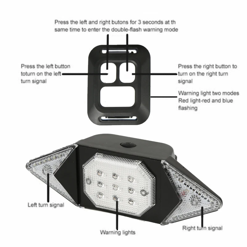 Безопасно ездить: через дистанционный пульт интеллигентая (ый) указатели поворота, то, что вы могли бы дать на обратной стороне транспортным средством светильник сигнала подсказки для влево или вправо рулевого упаковки и торможения для того, чтобы обеспечить более высокий уровень безопасности.
