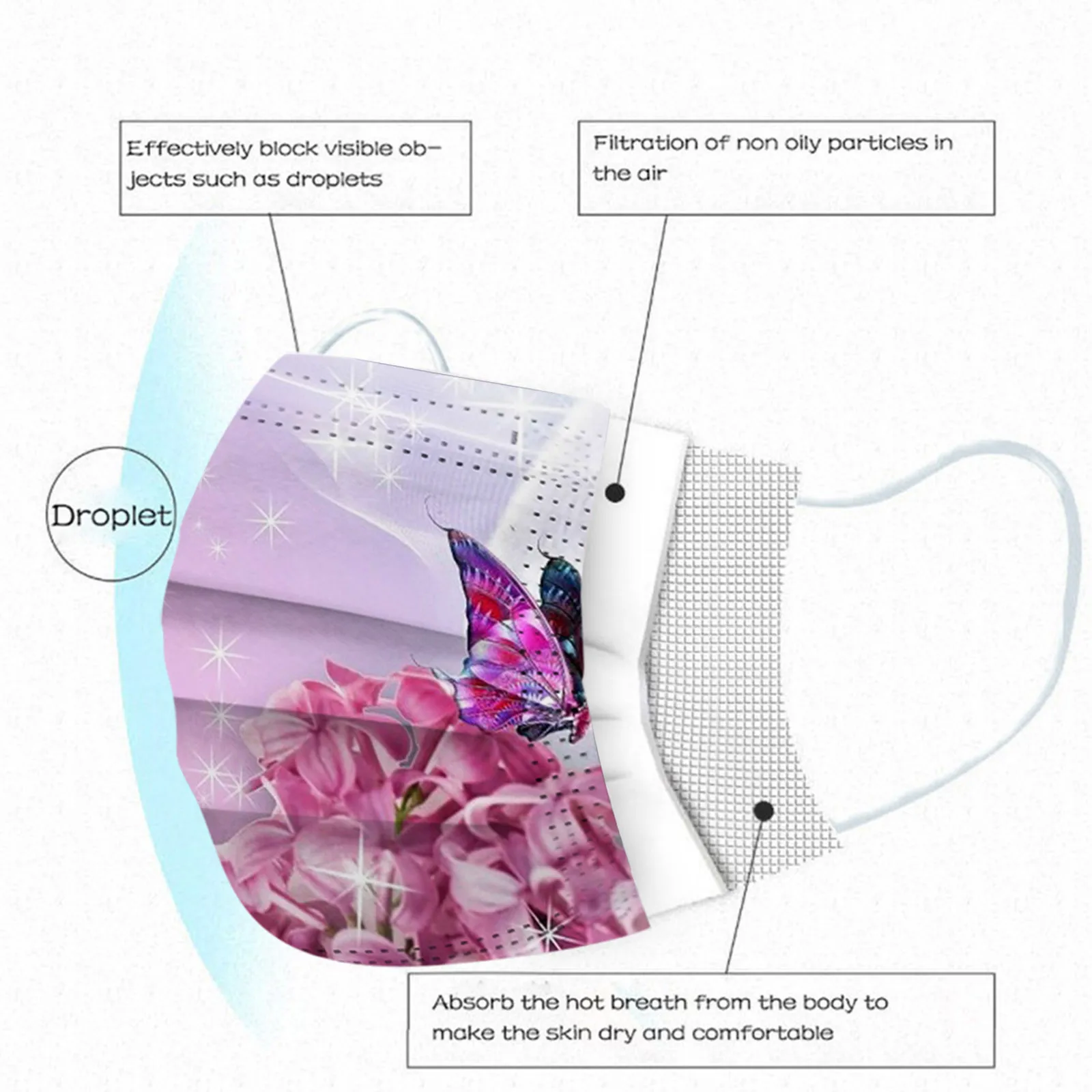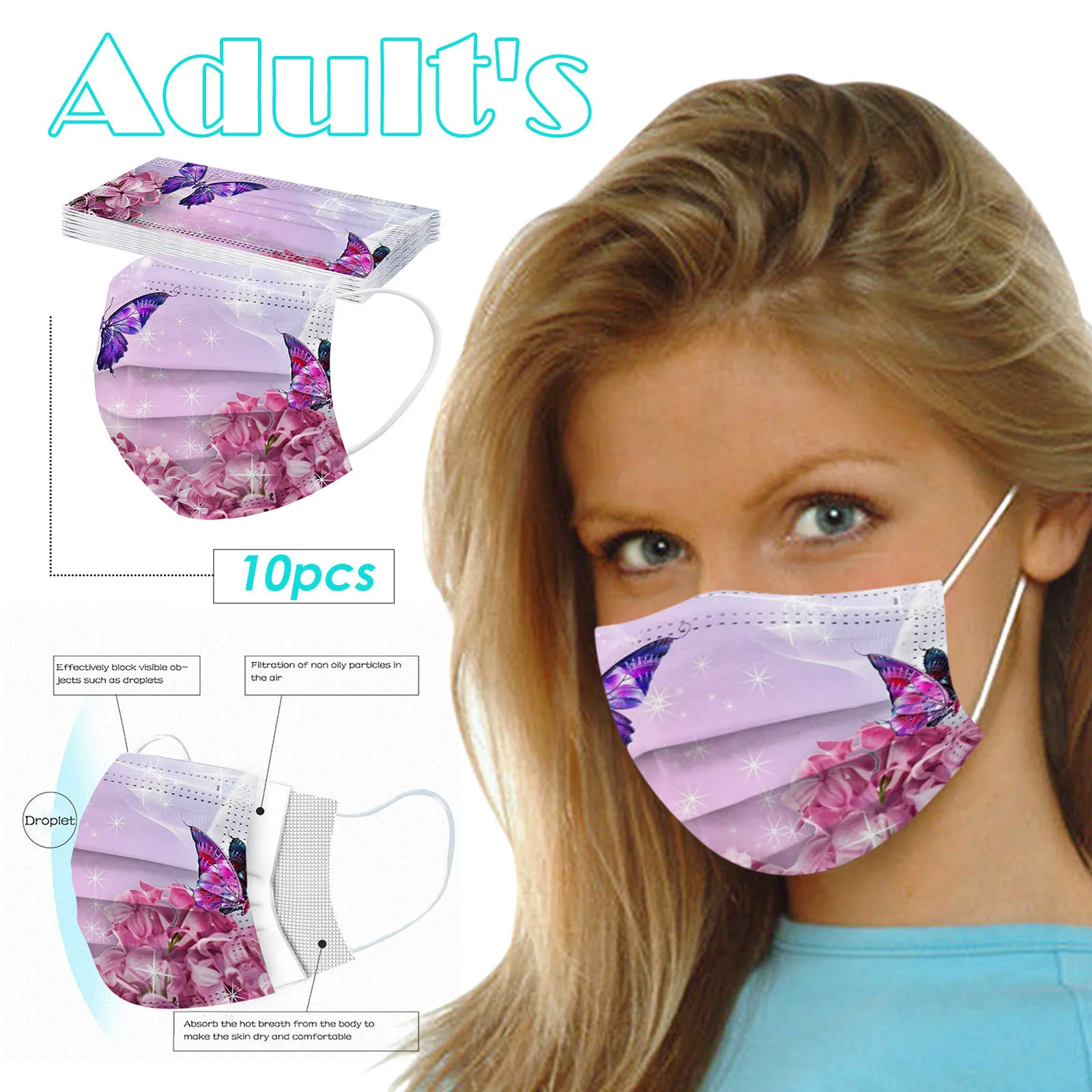 10 шт. одноразовые дыхательные аппараты для взрослых; Масок для лица рот шапки с принтом бабочки Mascarillas три Слои защитная обложка для рта маска для лица маска Тканевая