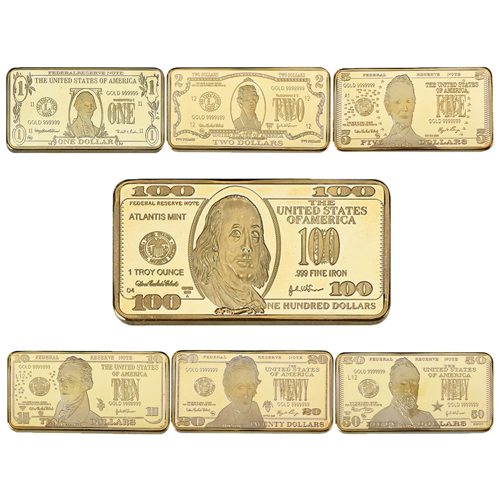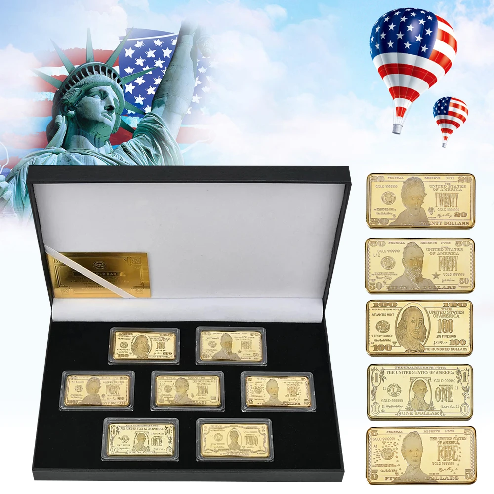 WR 7 шт.лот Золотой стержень в долларах США с держателем для монет, американские сборные монеты, набор слитков, сувениры, подарки, Прямая поставка