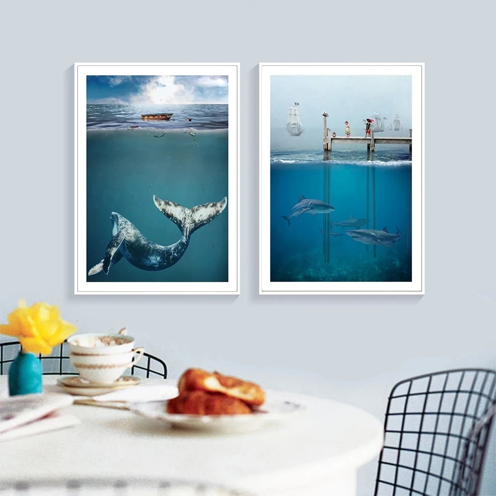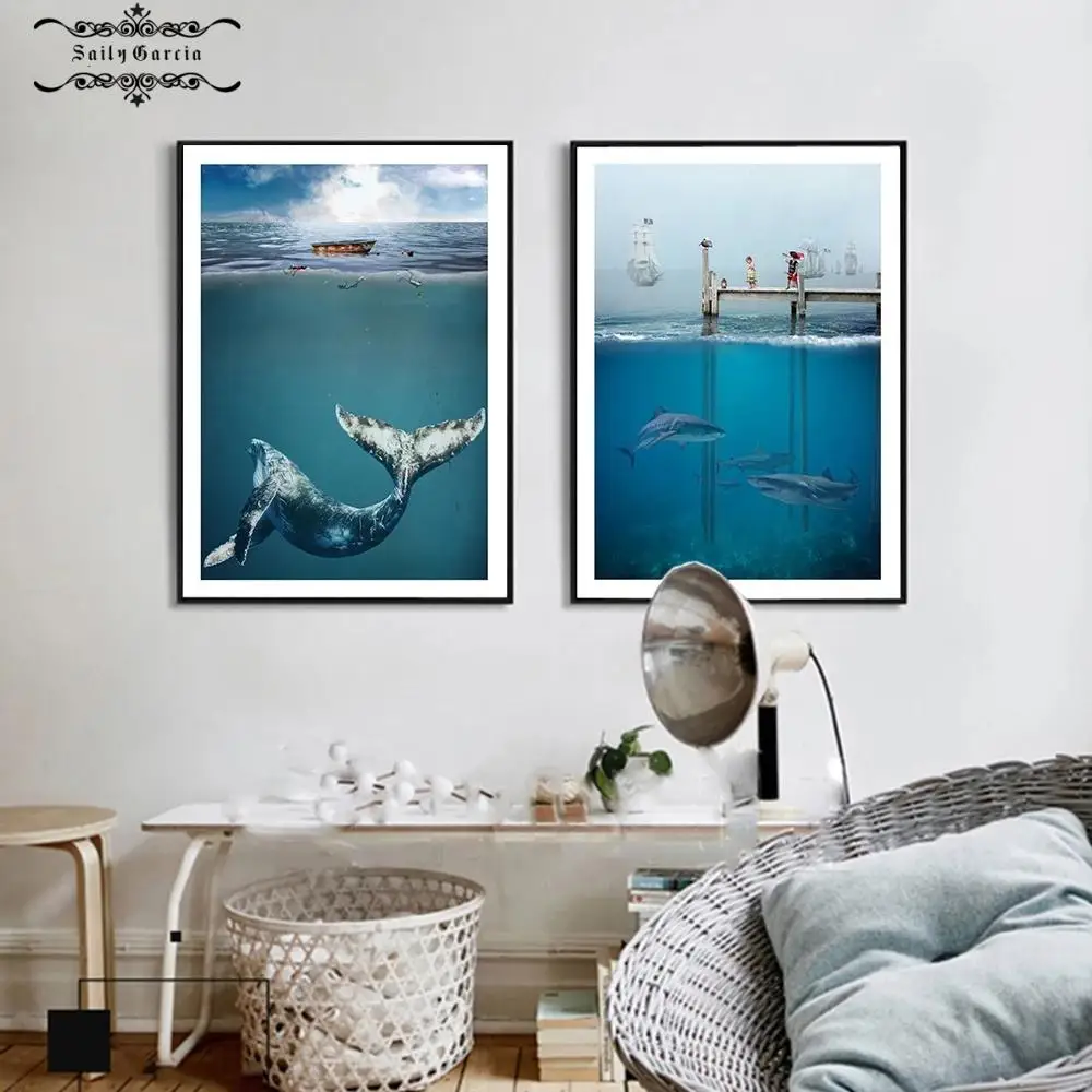 Плакаты и принты с изображением Морского Пейзажа, современный подводный мир, Китовая акула, настенная живопись, картины для гостиной, домашний декор