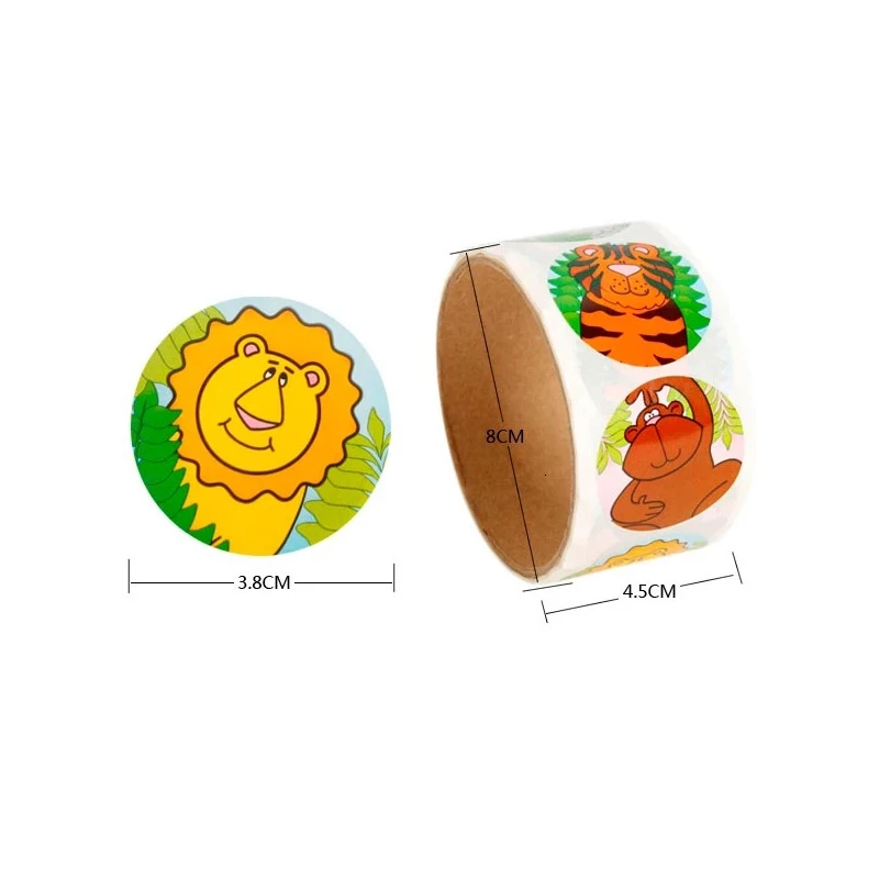 1 рулон бумажных наклеек серии с животными, круглые Мультяшные наклейки, Подарочные бирки, принадлежности для вечеринки в стиле сафари джунглей, украшения для бисквитного пакета сделай сам