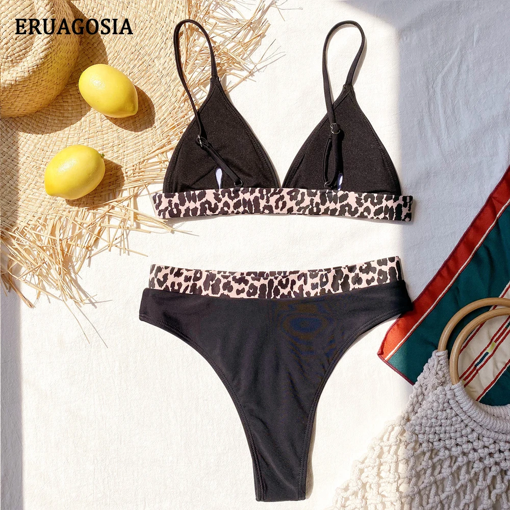 Женский леопардовый бикини, пикантный купальный костюм с завышенной...
