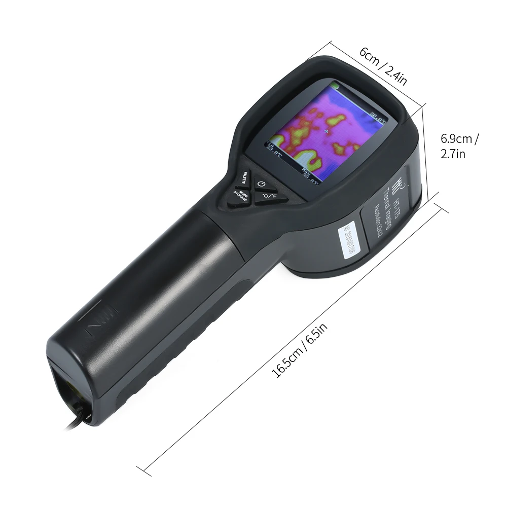 Эта тепловизионная камера имеет ручной дизайн и простую работу, которая широко используется во многих областях, таких как электрическое оборудование, теплоизолированный пол, системы отопления и вентиляции, осмотр стен и т. д.Особенности:Ручной и противоскользящий корпус для удобного и прочного захвата.ЖК-дисплей: цифровой ЖК-дисплей с подсветкой для четкого отображения температуры.Может измерять различные горячие, опасные или труднодоступные предметы без контакта, что безопасно для использования.Функция хранения данных: можно запомнить данные нажатием кнопки MODE Storage.Переключаемый блок: может легко переключаться между градусами Цельсия (°C) и фаренгейтом (°F).Встроенная переключаемая цветовая палитра: можно выбрать красную или белую цветовую палитру с оксидом железа.Может быть широко использован для мониторинга электрического оборудования, теплоизоляционного пола, осмотра стенок и т. Д.Характеристики:Материал: АБС-пластикЦвет: черныйДисплей: 2,0Разрешение инфракрасного изображения: 32*32Диапазон измерения: -20 ~ 300 ℃ / -4 °F ~ 572 °FТочность измерения: ± 2% / ± 2 ℃Длина волны покрытия: 8-11.5мкмРежим фокусировки: фиксированныйЦветовые палитры: оксид железа, красное и белое свечениеПитание: 1*3,7 V 1400 мА/ч, Перезаряжаемые Батарея (все указанные аккумуляторы входят в комплект поставки)Рабочая температура: 0 ~ 50 ℃ / 32 °F ~ 122 °FТемпература хранения: -20 ℃ ~ 50 ℃ / -4 °F ~ 122 °FРазмер изделия: прибл. 16,5*6,9*6 см/6,5*2,7 * 2.4inВес изделия: прибл. 132g/4,7 ozРазмер посылка: прибл. 19,4*9,4*7,5 см/7,6*3,7 * 3inВес посылка: прибл. 277 г/9,8 унцийПосылка:1 * тепловизионная камера1 * ручной ремешок1 * Руководство пользователя (на английском языке)