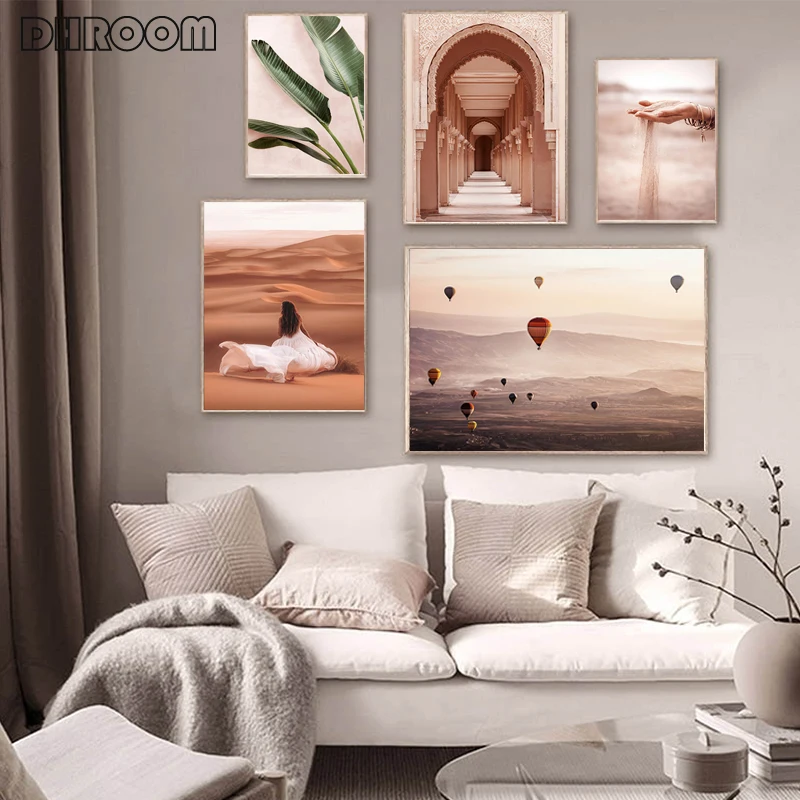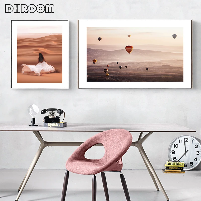 Desert девушка воздушный шар с гелием Холст Для Живописи Исламской Архитектура плакат пейзаж из путешествия печати Wall Art украшение дома