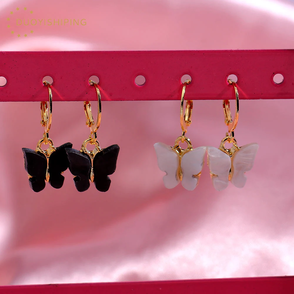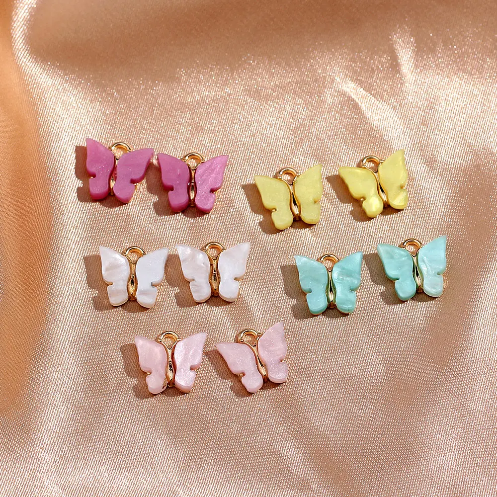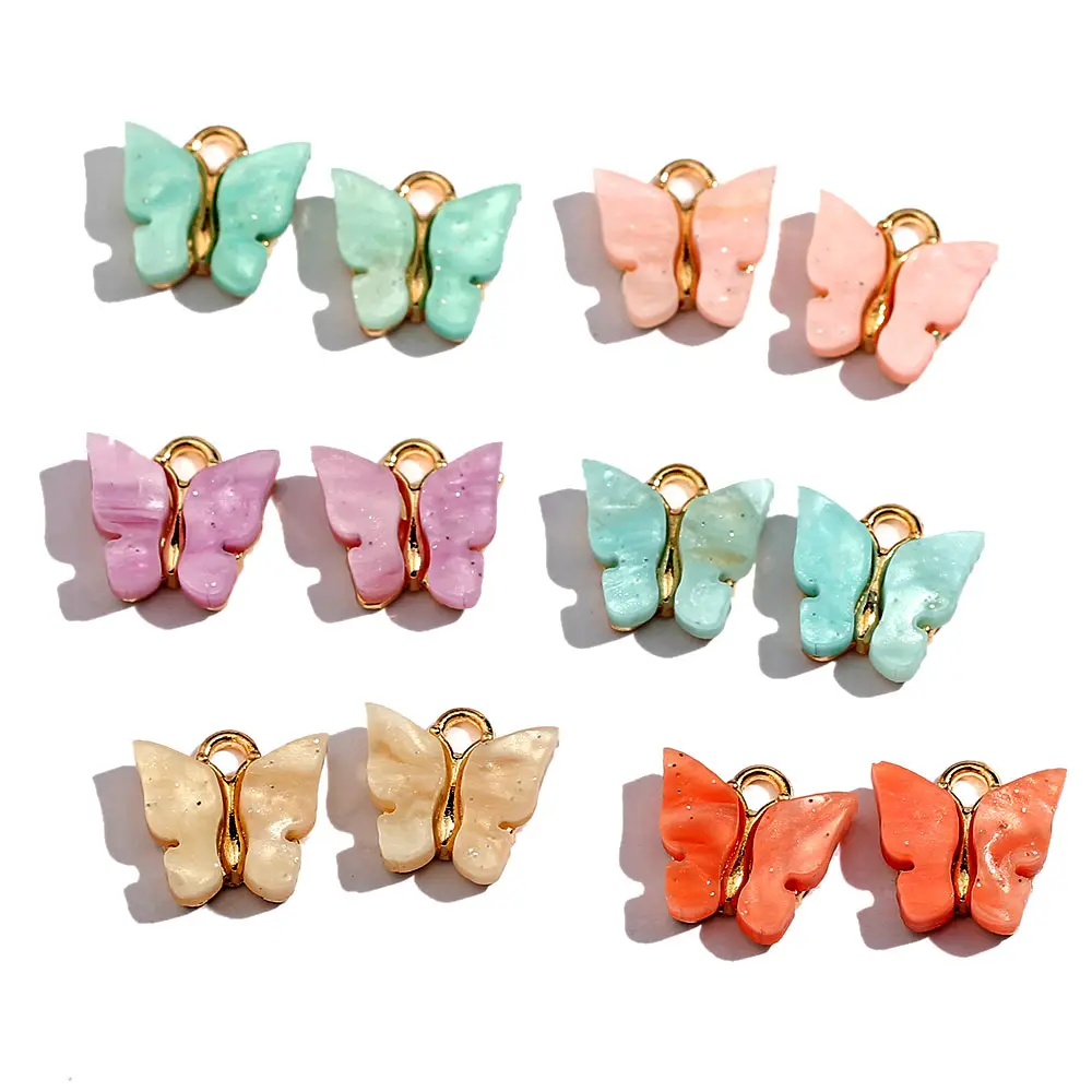 Лидер продаж, милые мини акриловые подвески в виде бабочек из золотого сплава, 10 шт., разноцветные аксессуары для самодельных сережек-бабочек