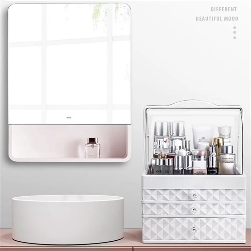 Модный вместительный ящик для хранения косметики, водонепроницаемый пыленепроницаемый Настольный органайзер для ванной комнаты, косметический Органайзер для ухода за кожей, ящик для хранения