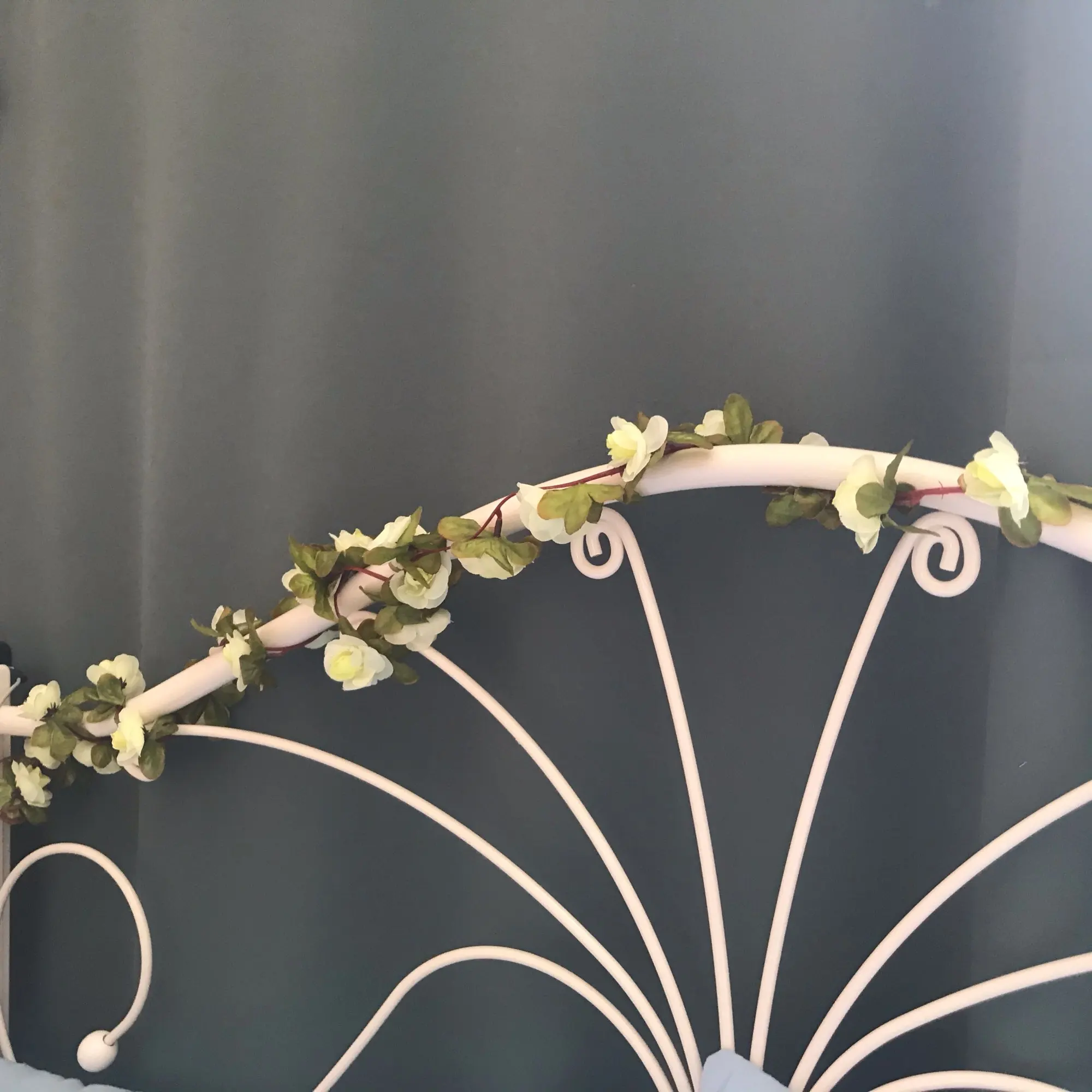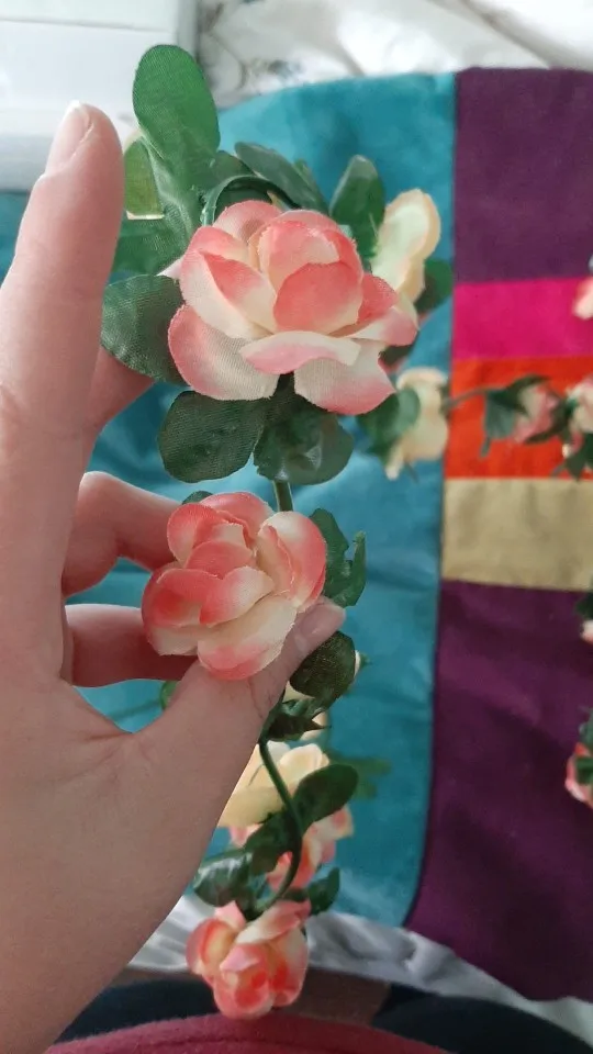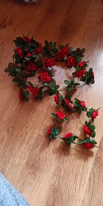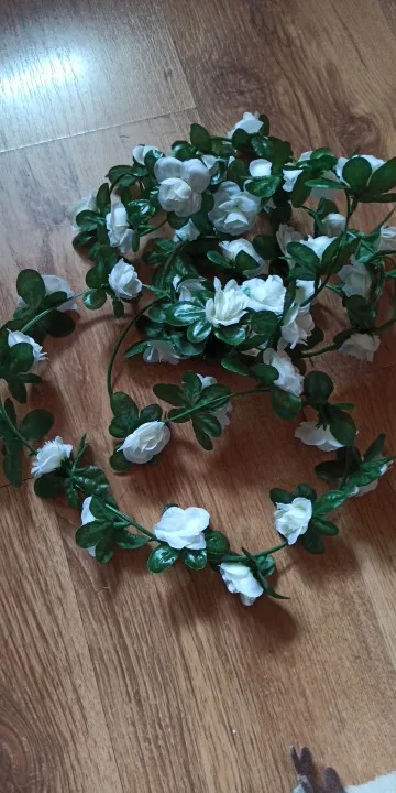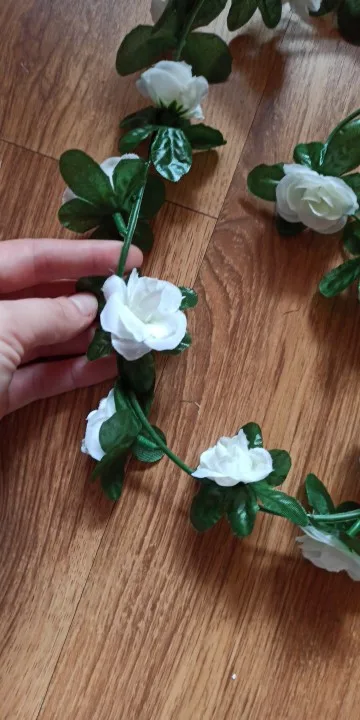 Очень красивая гирлянда, пришла целая,ничего не отваливается,густая,много цветочков,сама ветвь пластик,цветы и листья ткань с пропиткой,как живые,шикарно,быстрая доставка,рекомендую этого продавца,буду заказывать еще
