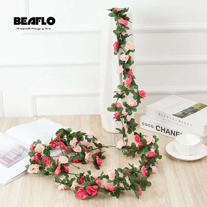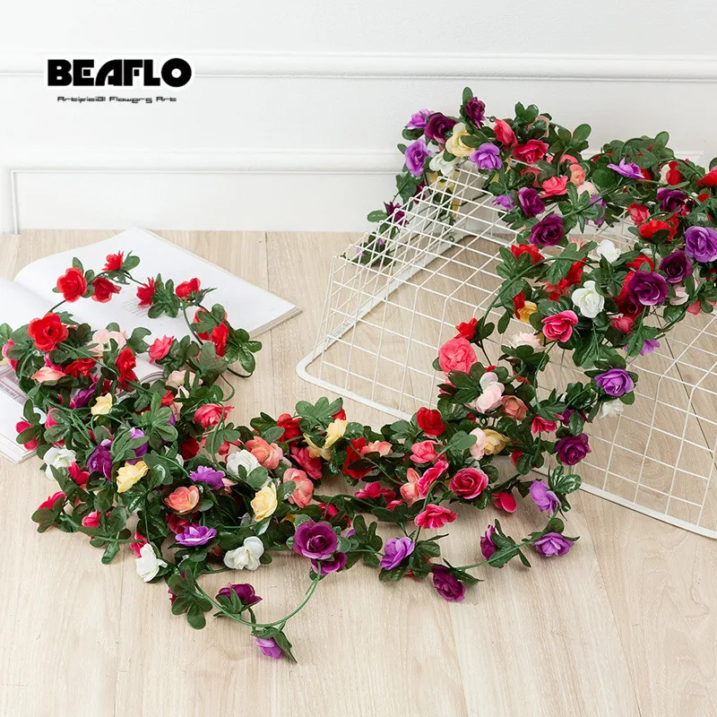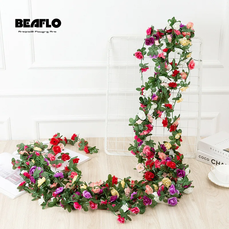 Искусственные розы, 2,2 м, искусственные цветы из ротанга, Осенний маленький пион, шнурок для декора, шелковая искусственная гирлянда для свадьбы, дома, оформление сада и отеля