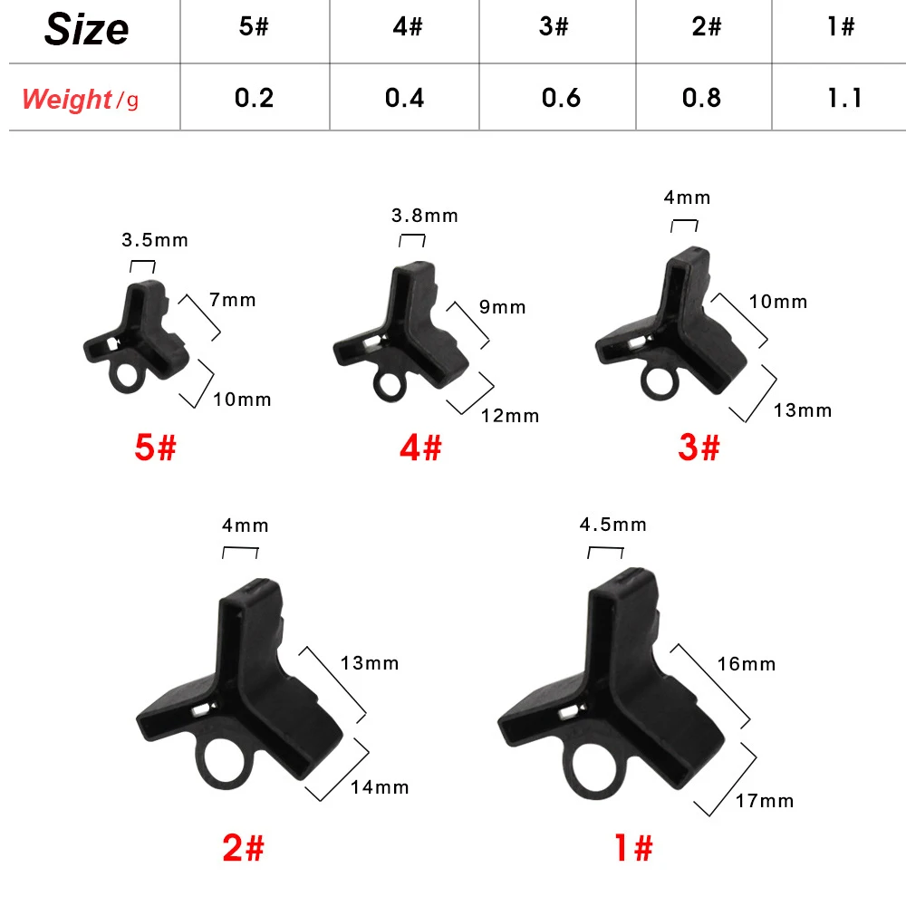 Размер 1: для стандартных тройных крючков 1/0; 2/0; 3/0;