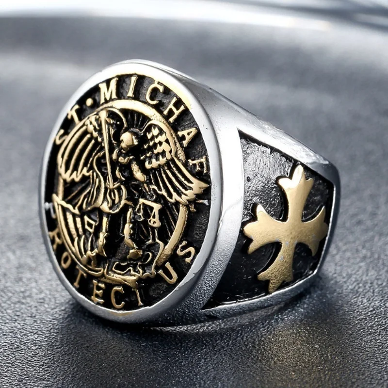Классическое модное резное мужское массивное кольцо в стиле панк с крестом арчангеля в американском стиле
