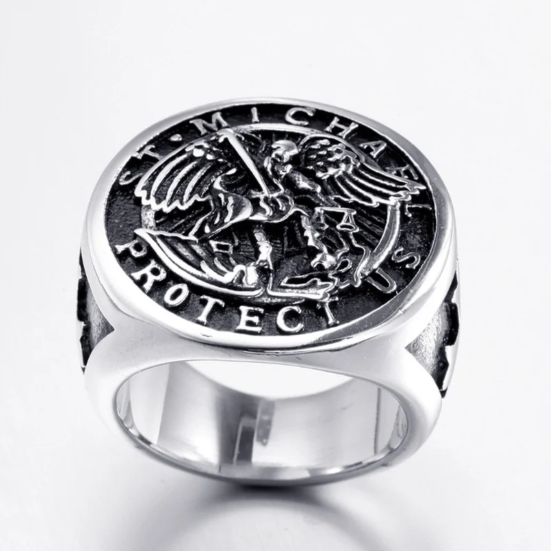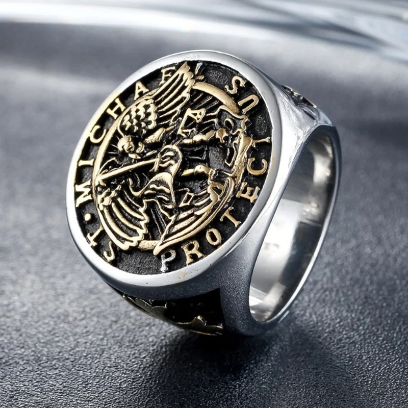 Классическое кольцо для мужчин, амулет с изображением Архангела, св...
