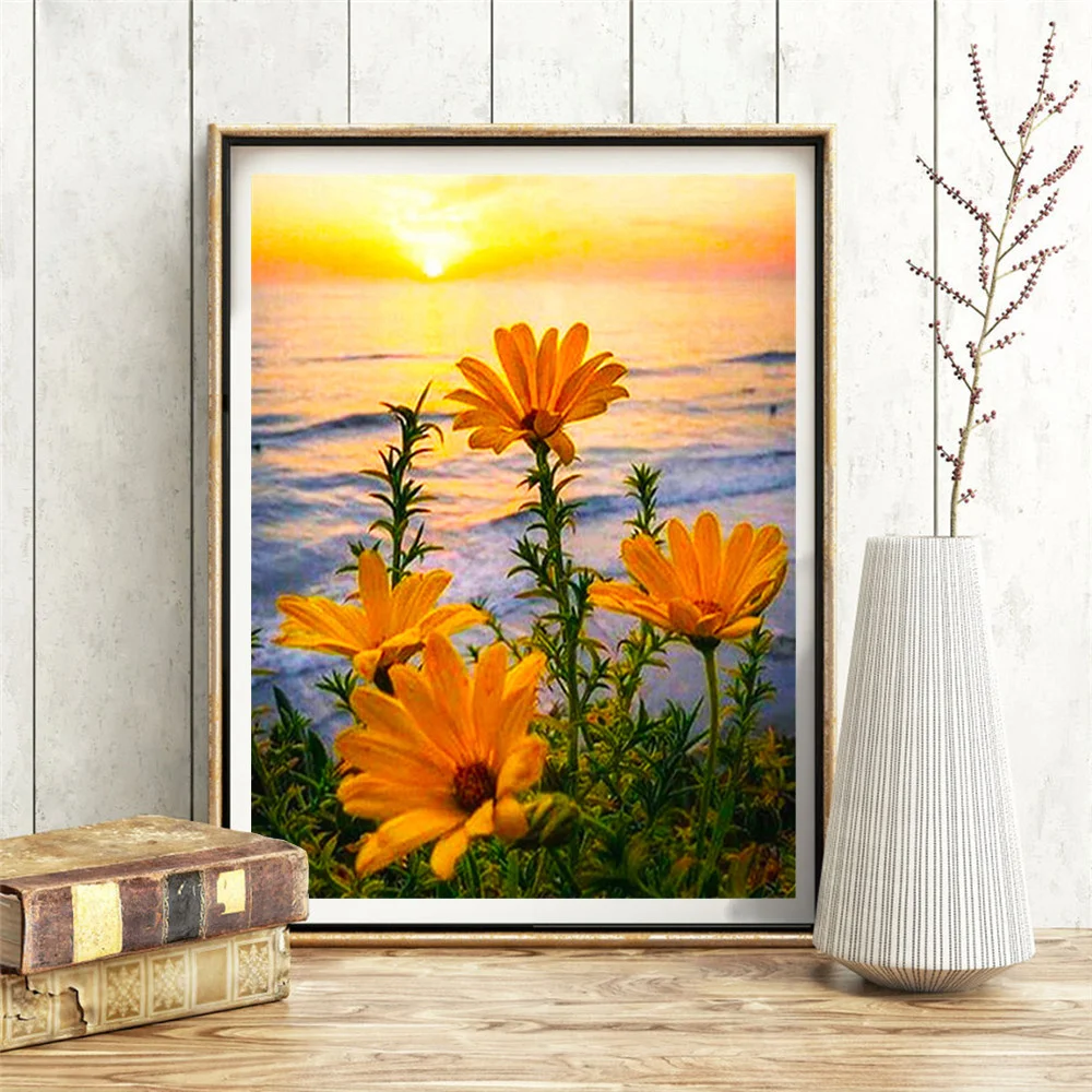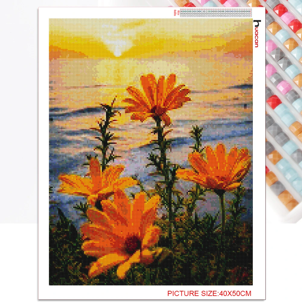 Алмазная вышивка Huacan, вышивка крестиком, цветок, набор для картин из алмазов 5d, закат, мозаика, Декор для дома