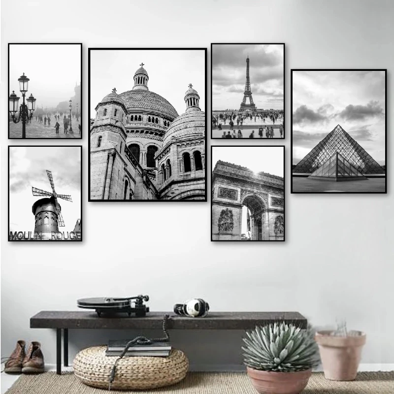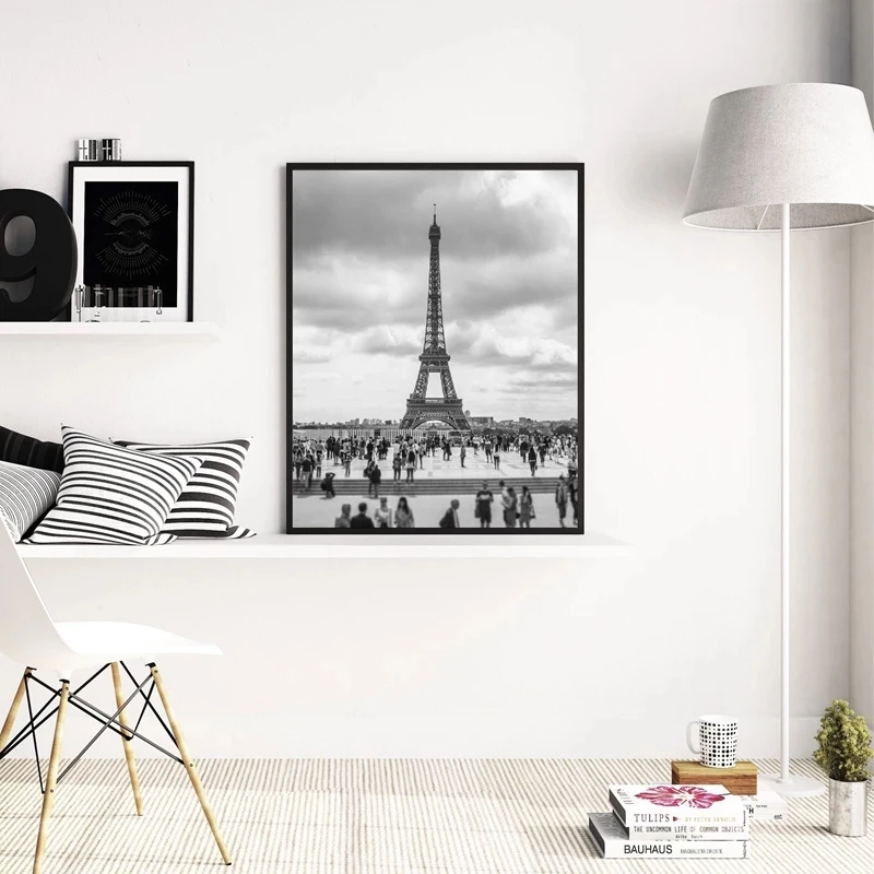 Настенный постер с изображением Эйфелевой башни, пейзажа, холст, живопись, стол, черно-белые картины для гостиной, домашний декор, без рамки