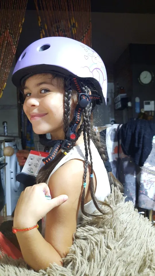 Отличный шлем, пришёл быстро, упакован в коробку, все застежки и регулировки хорошо работают. Брали на девочку 3 года, есть хороший запас, отлично регулируется по голове.