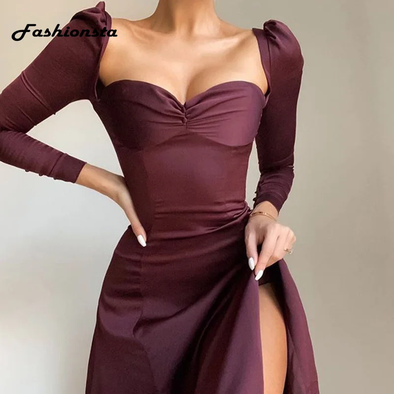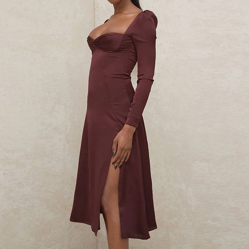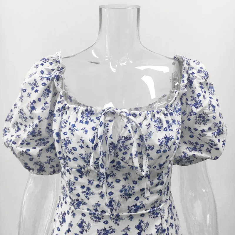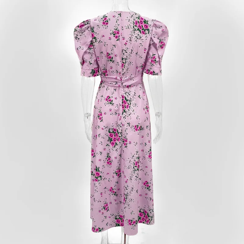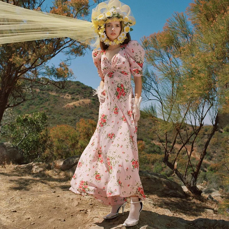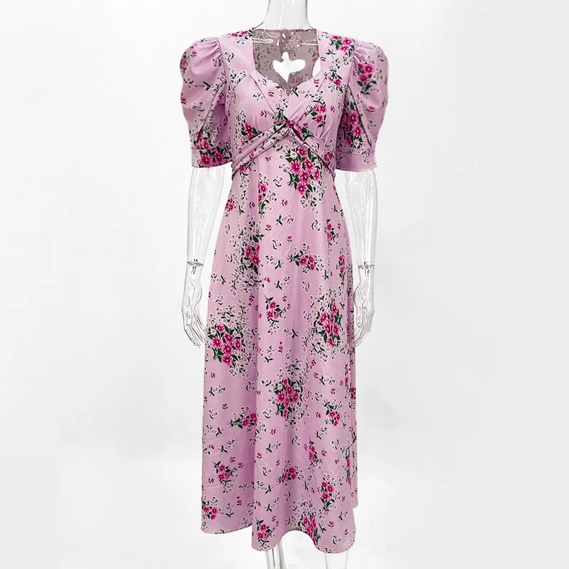 Платье женское длинное с цветочным принтом, с разрезом и рукавами-фонариками
