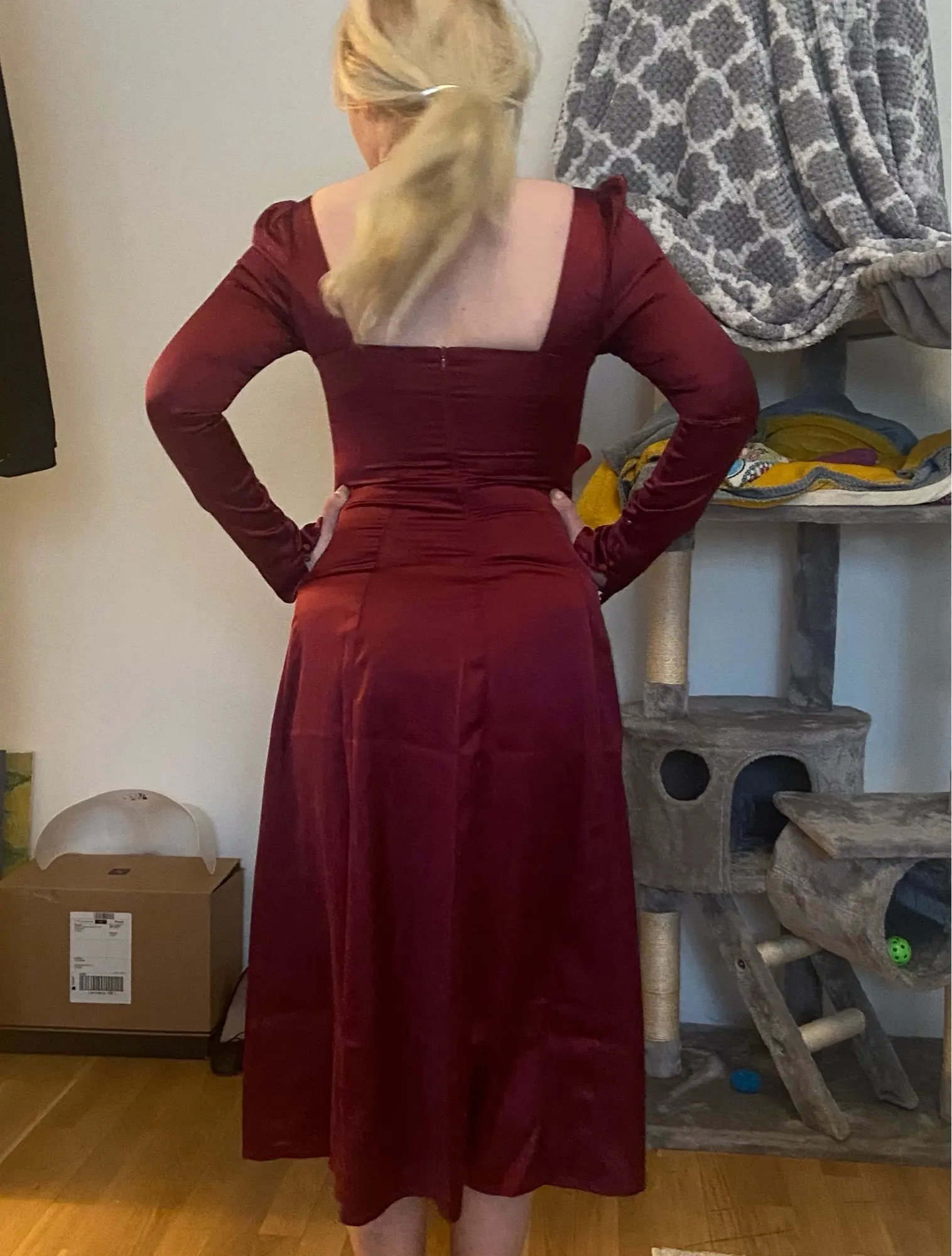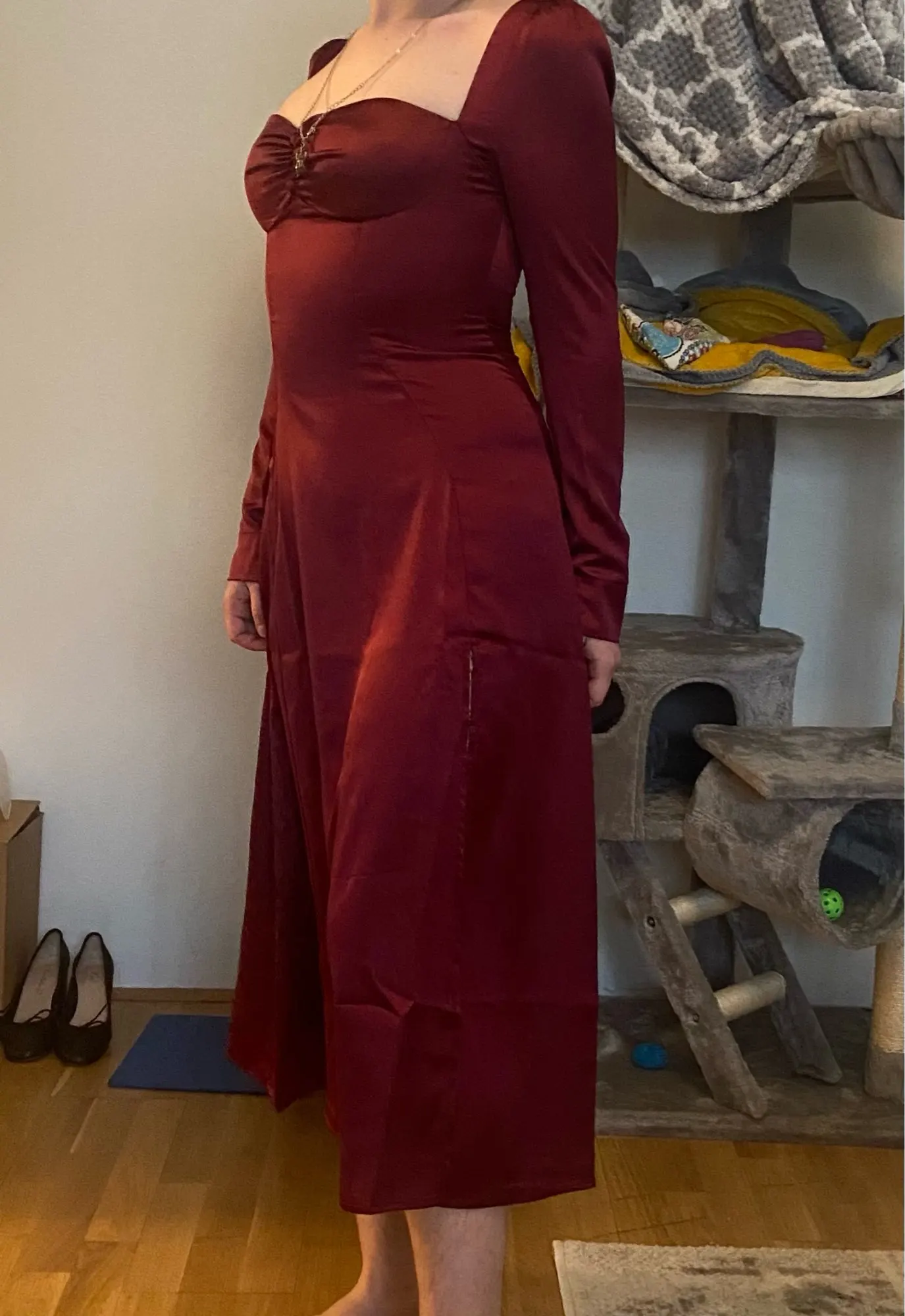 Красивое платье хорошего качества немного другой цвет, который больше бордовый красный и немного блестит
